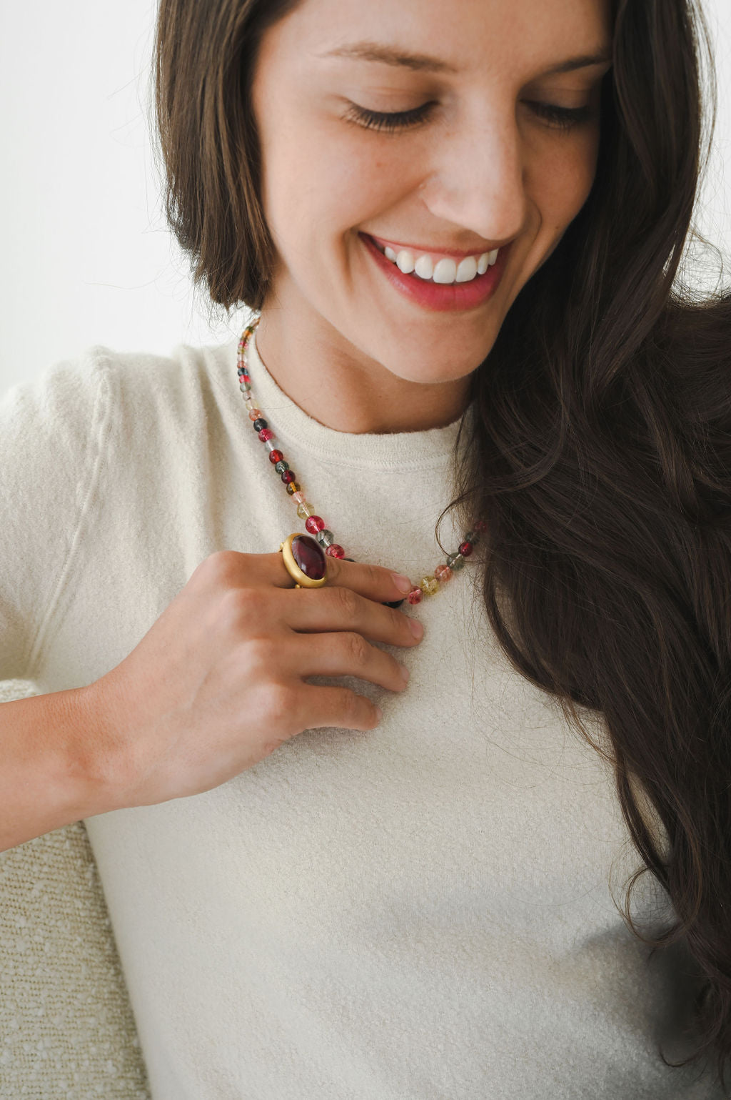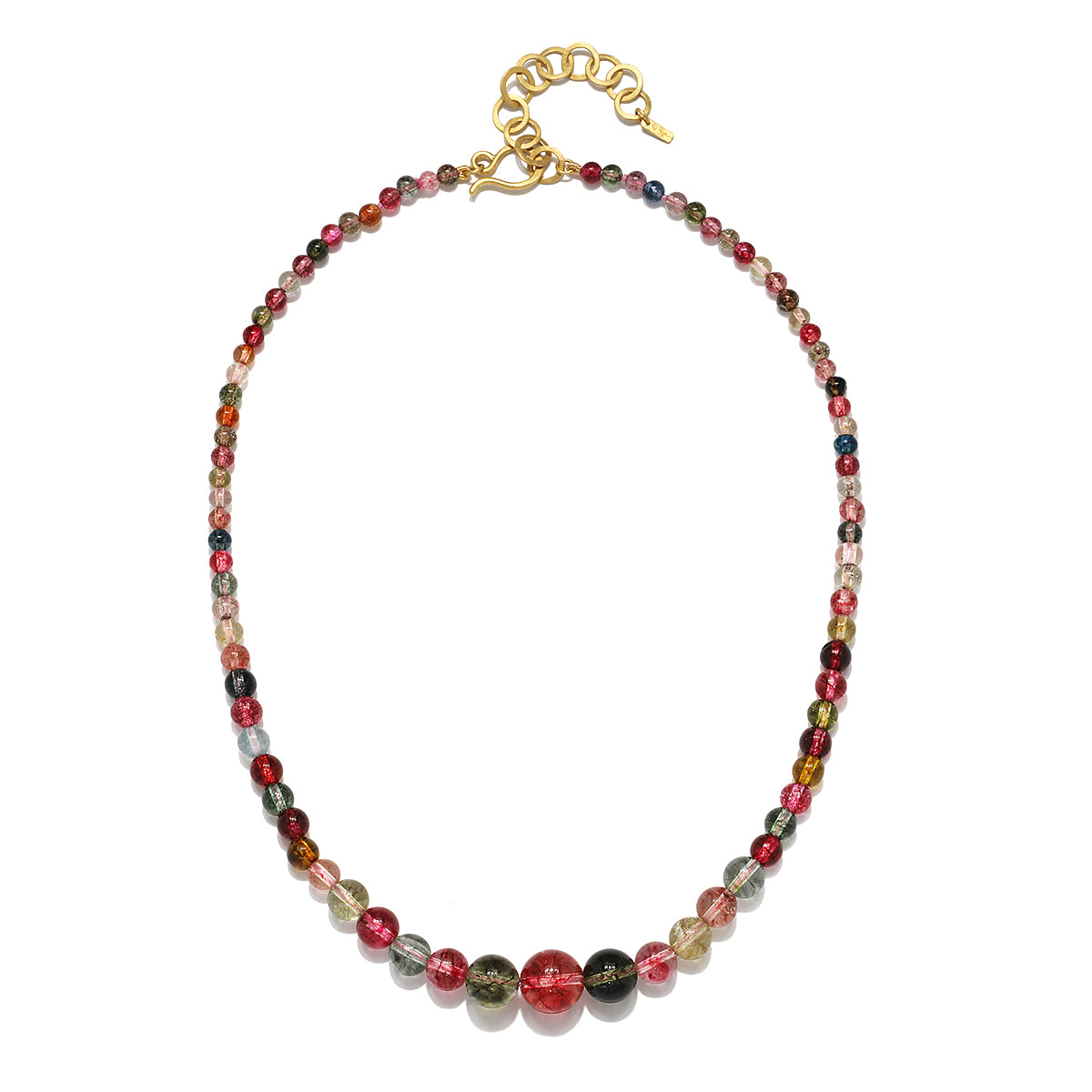 22 Karat Gold Multi-Colored Tourmaline Graduated Bead Necklace