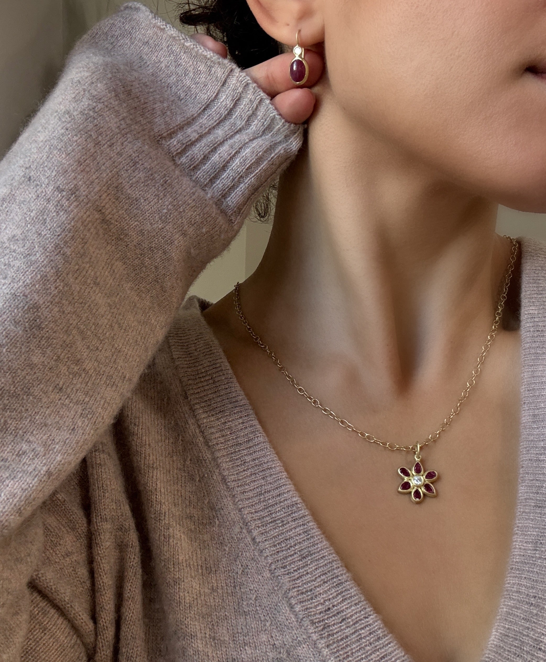 18k Gold Diamond Oval Ruby Cabochon Earrings