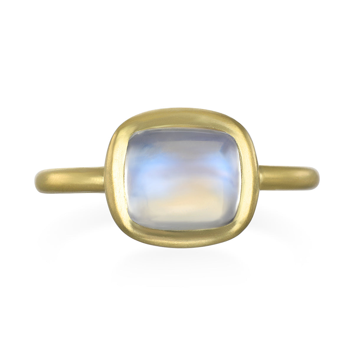 18k gold Ceylon Moonstone cushion cut bezel ring