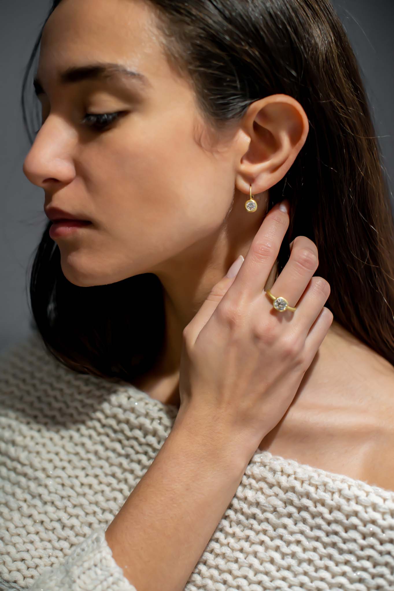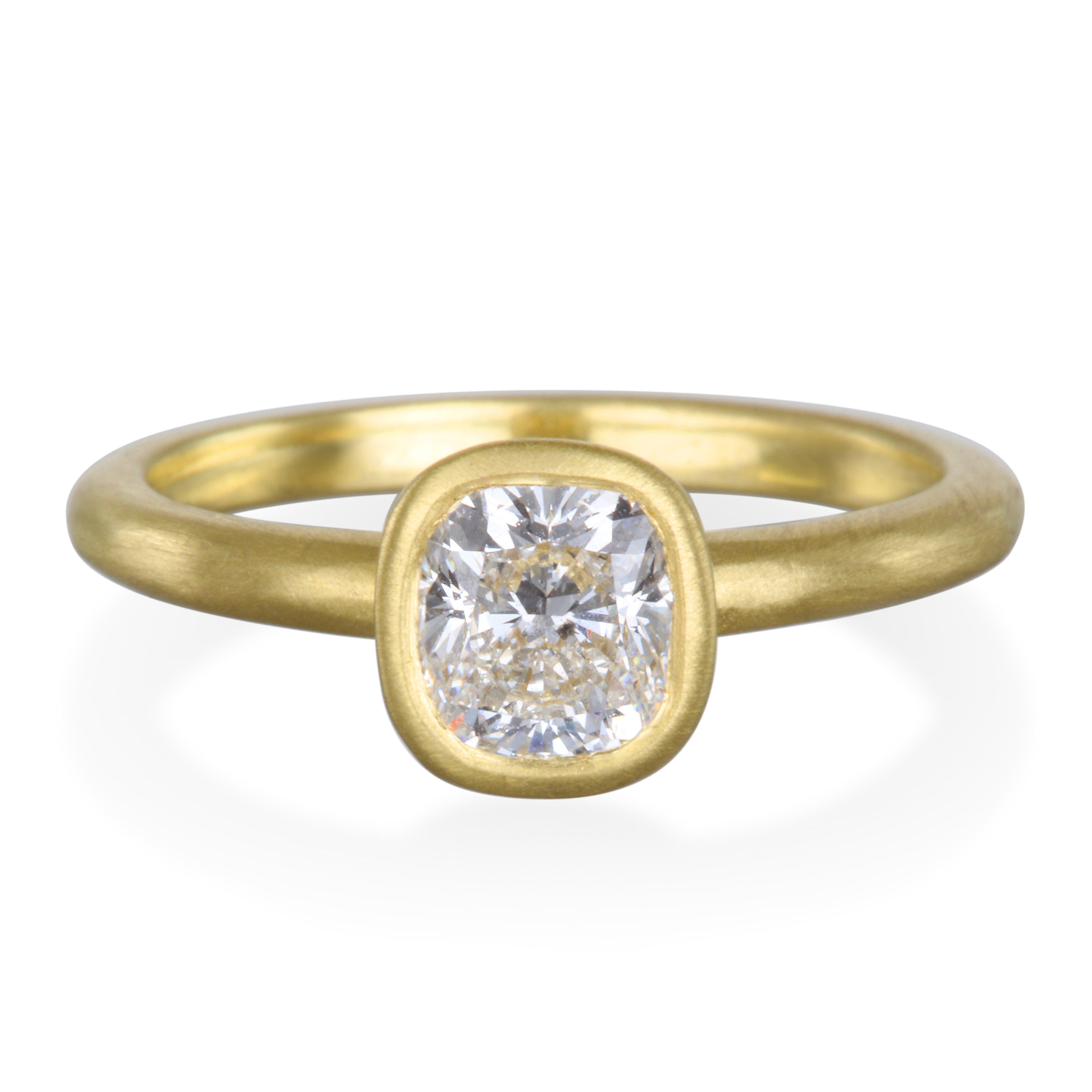 18k Gold Bezel Set Cushion Brilliant Diamond Ring with Open Gallery