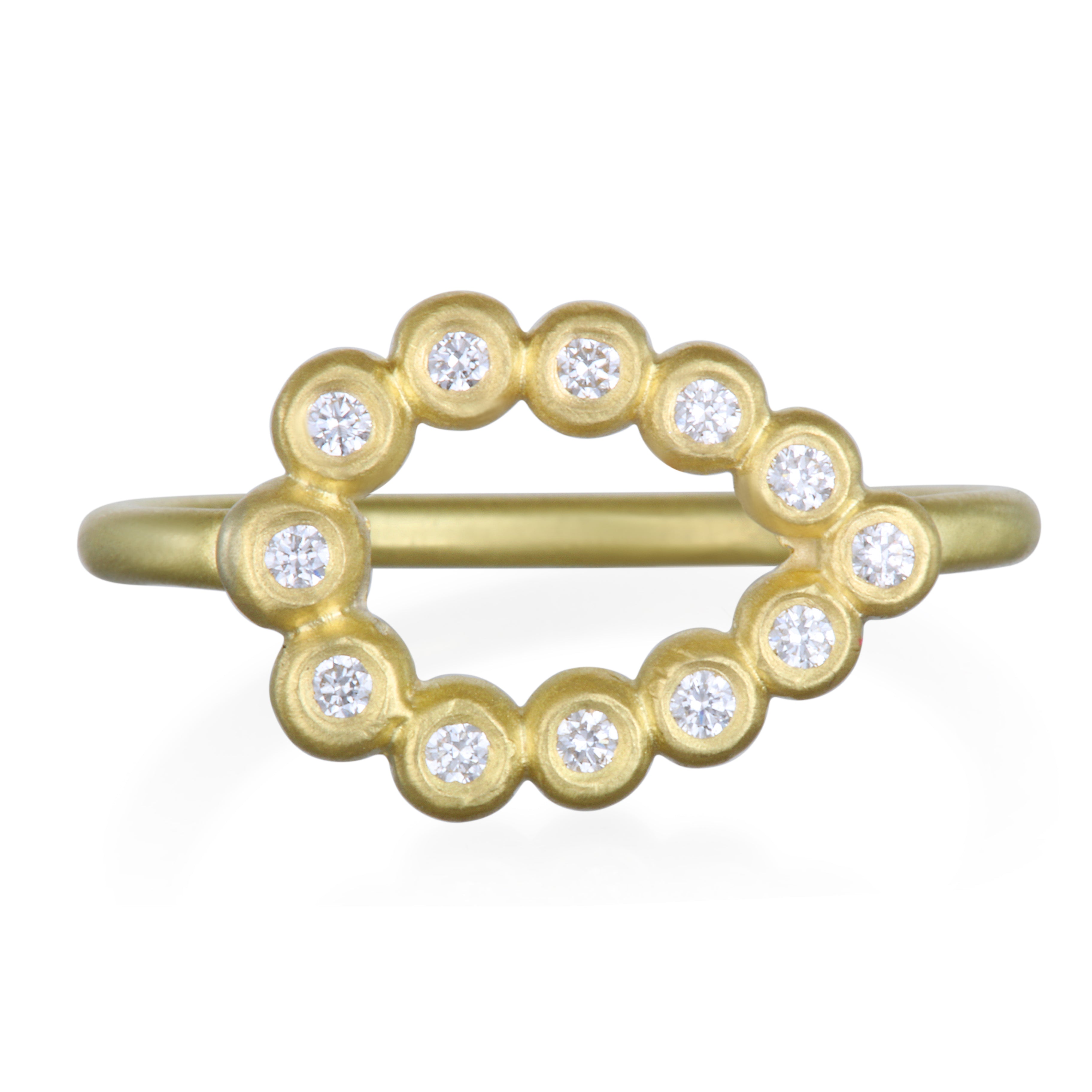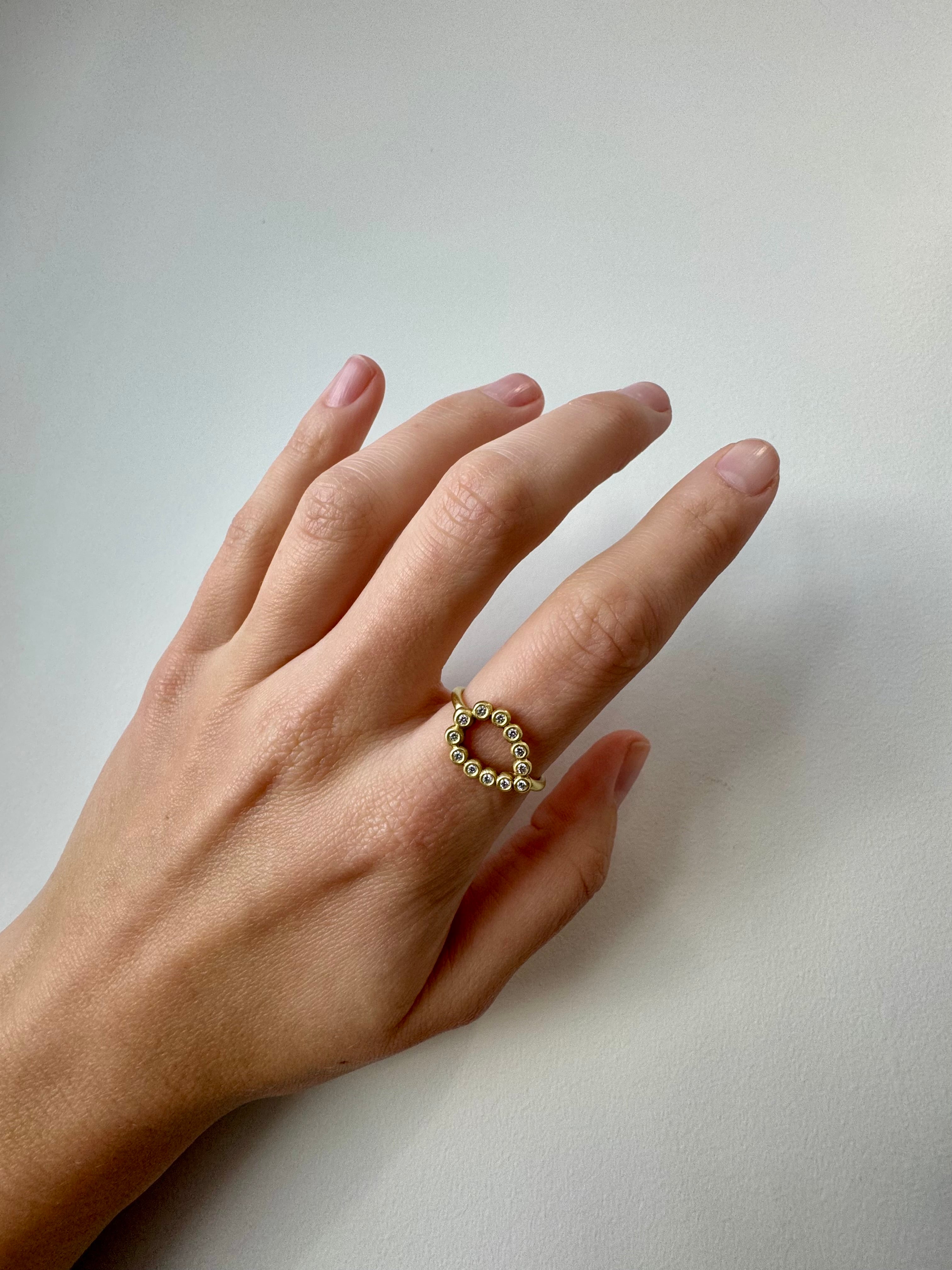 18k Gold Diamond Granulation Bezel Tear Drop Ring