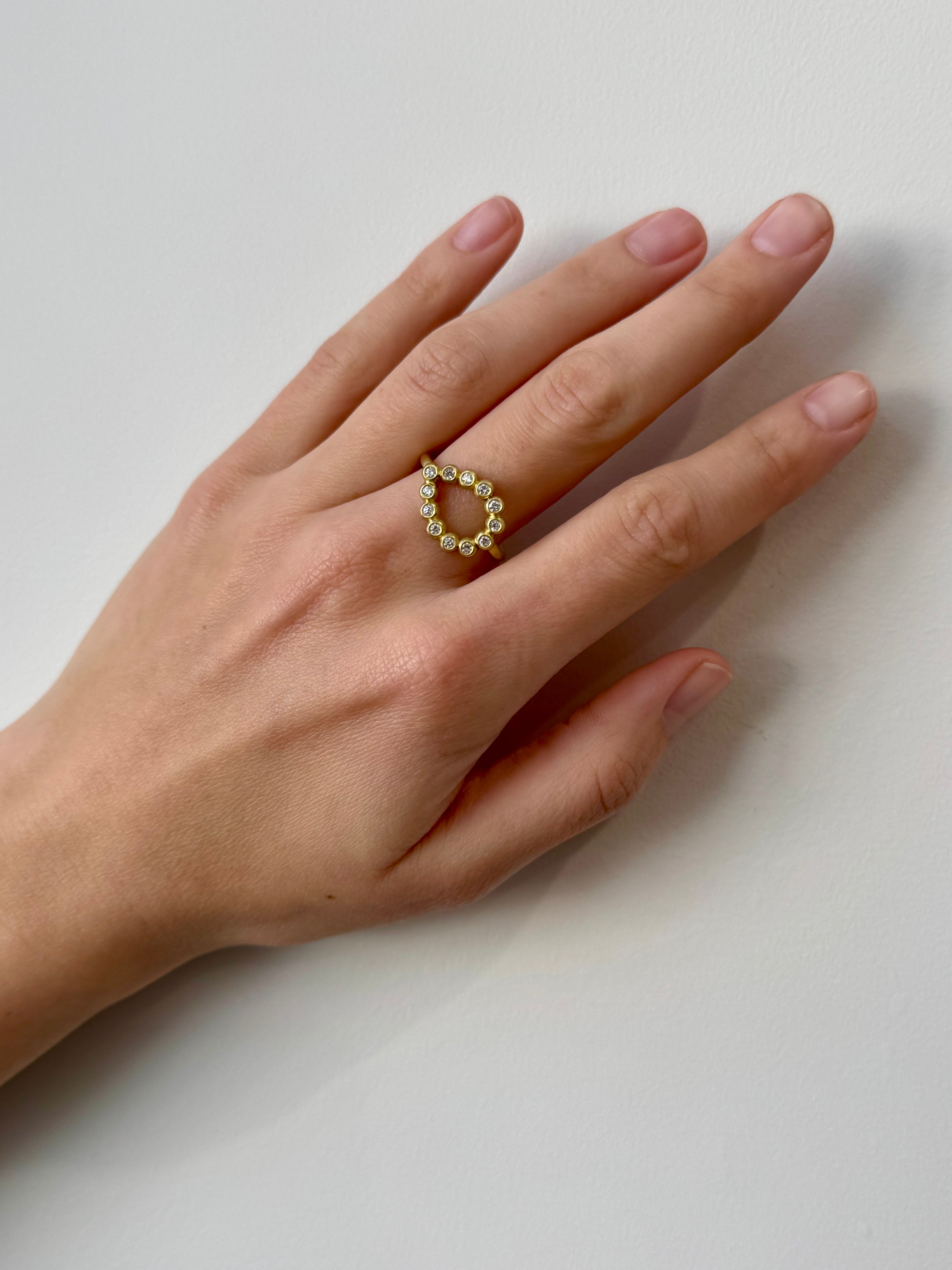 18k Gold Diamond Granulation Bezel Tear Drop Ring