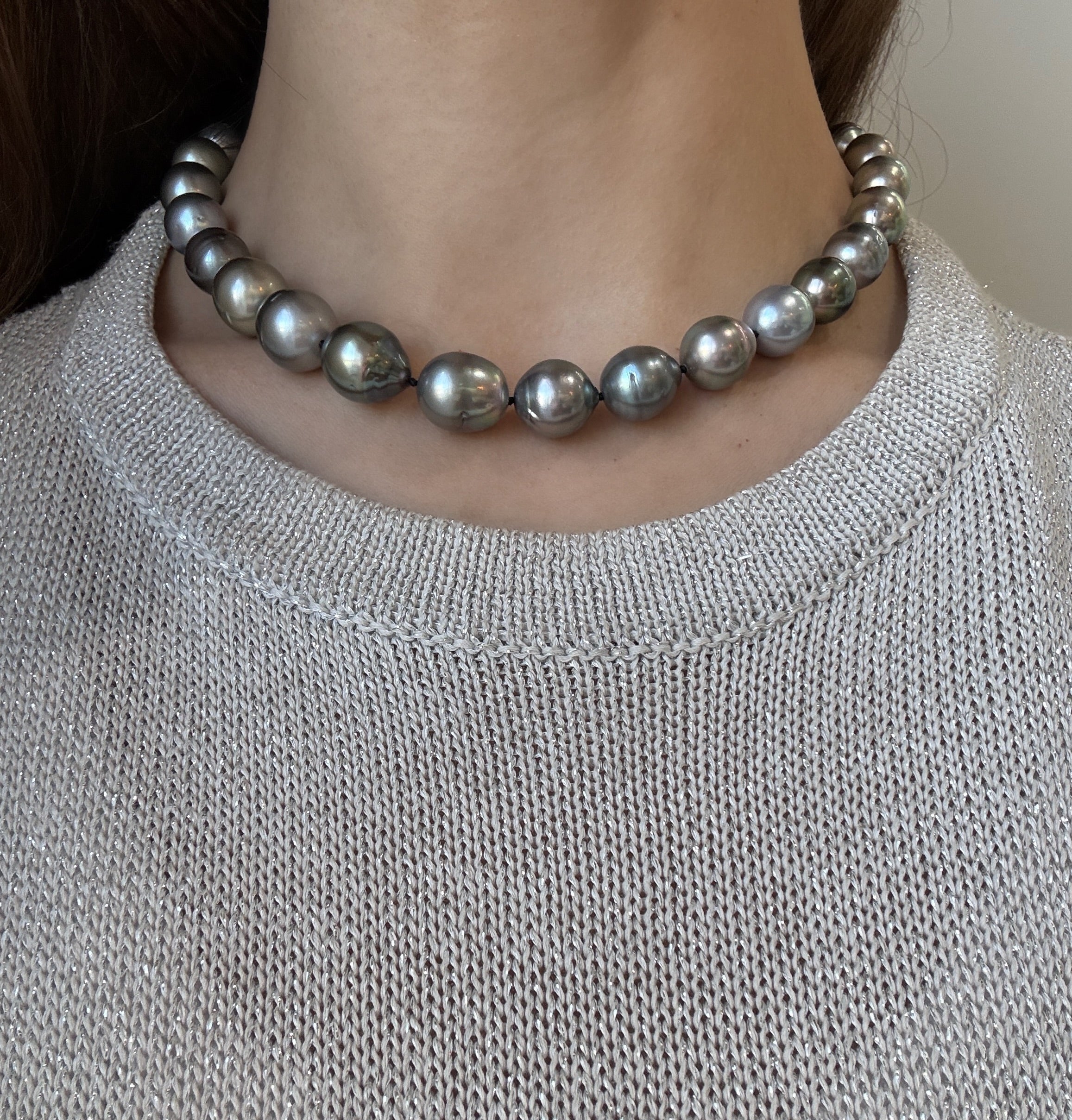 18 Karat Gold Black Tahitian Baroque Pearl Necklace