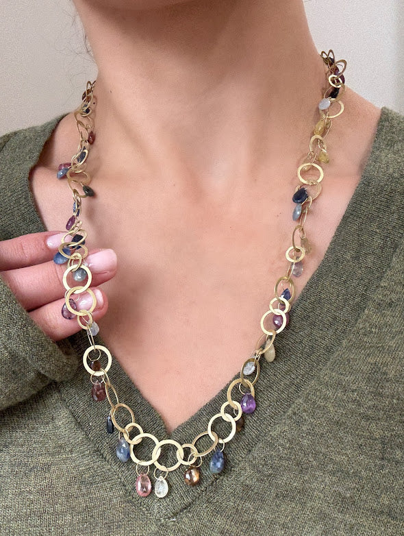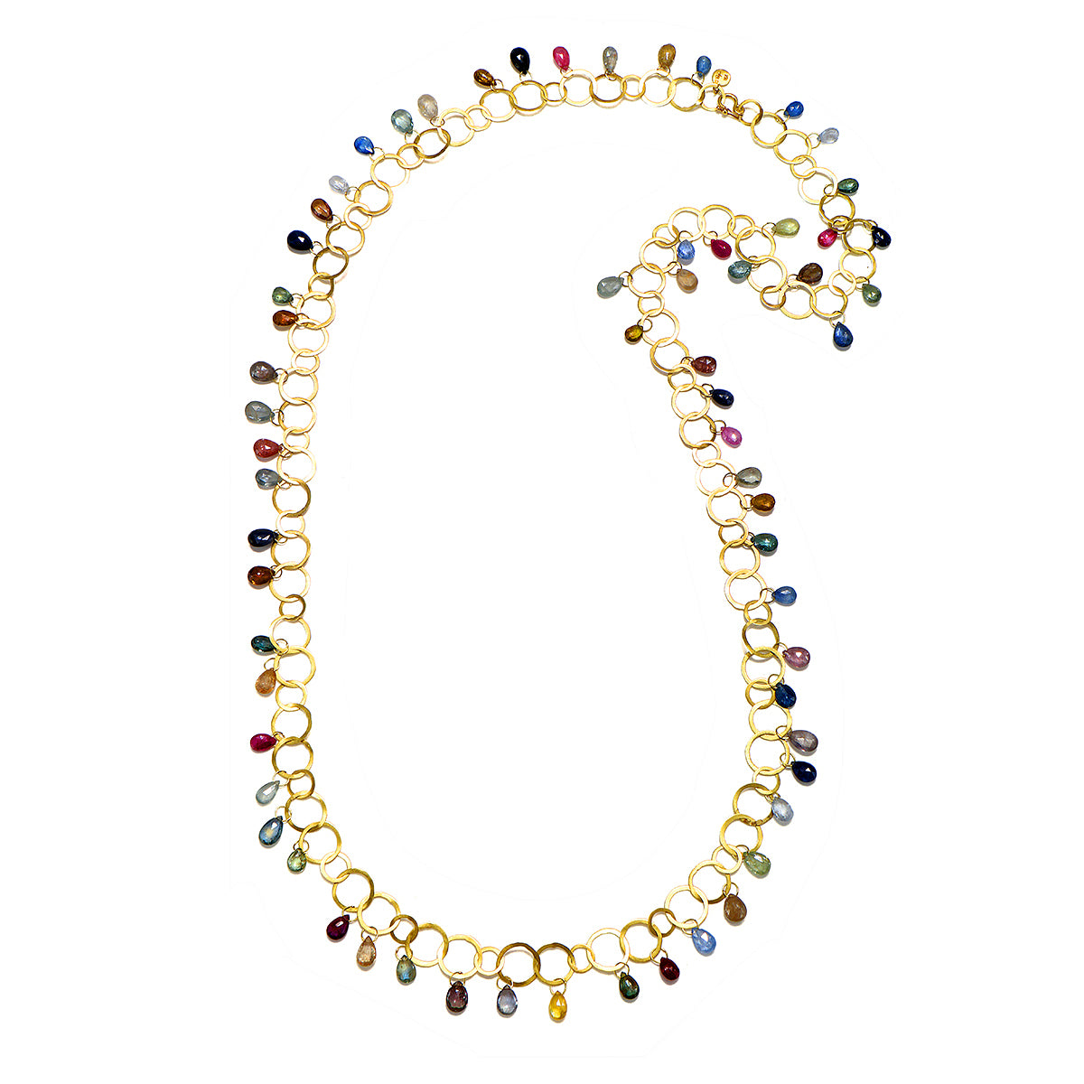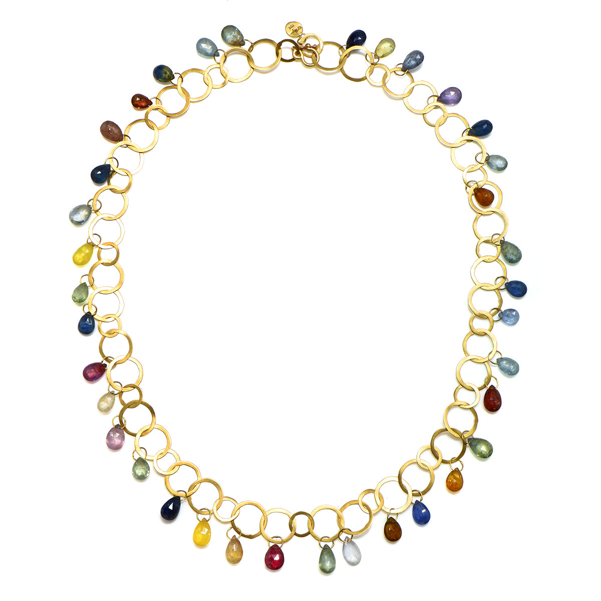 18 Karat Gold Umba Rainbow Sapphire Fringe Necklace