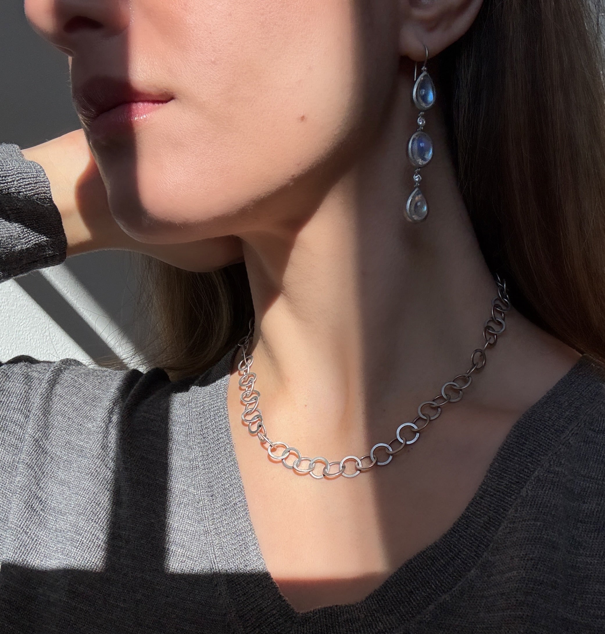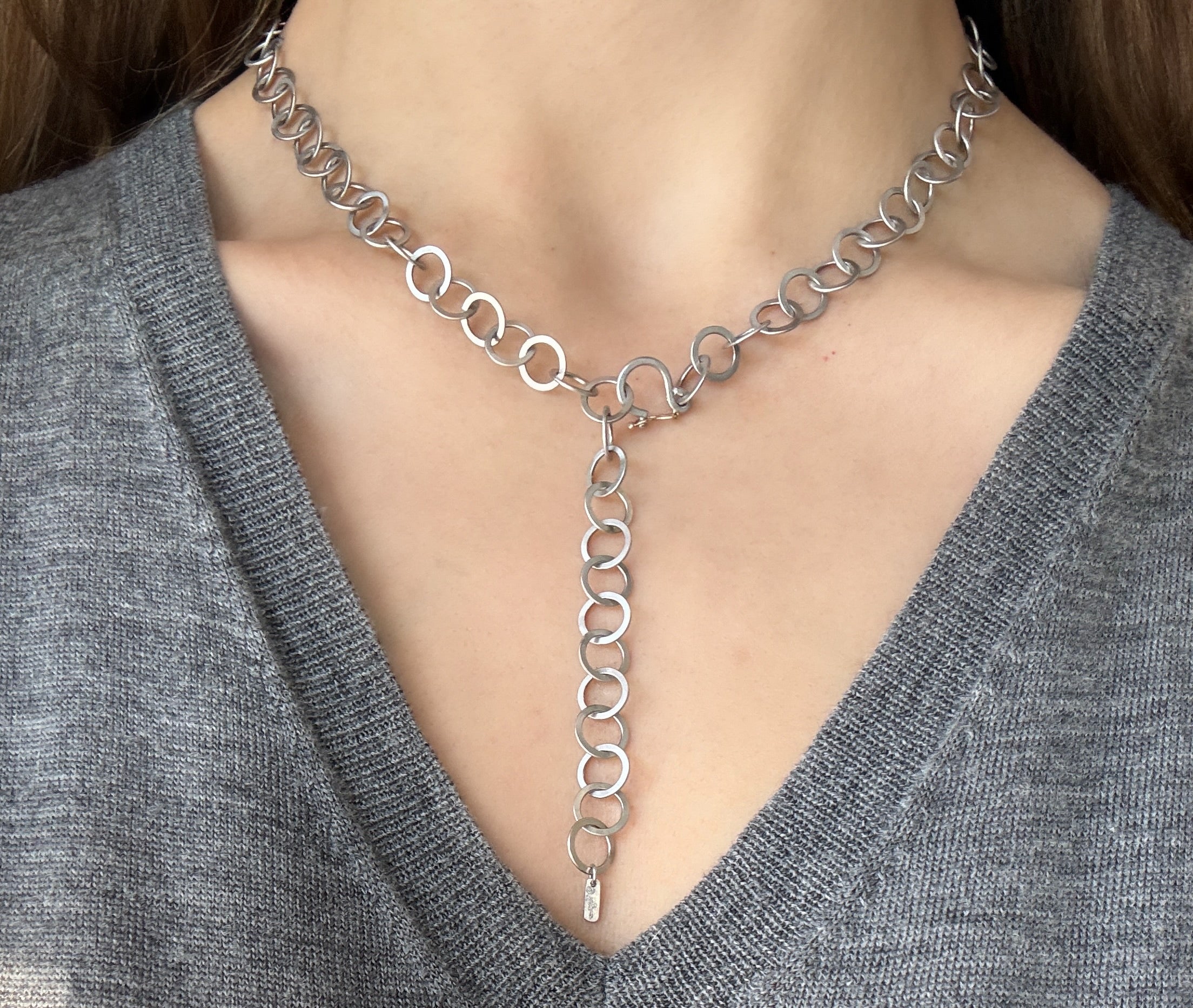 Platinum Handmade Round Planished Link Chain