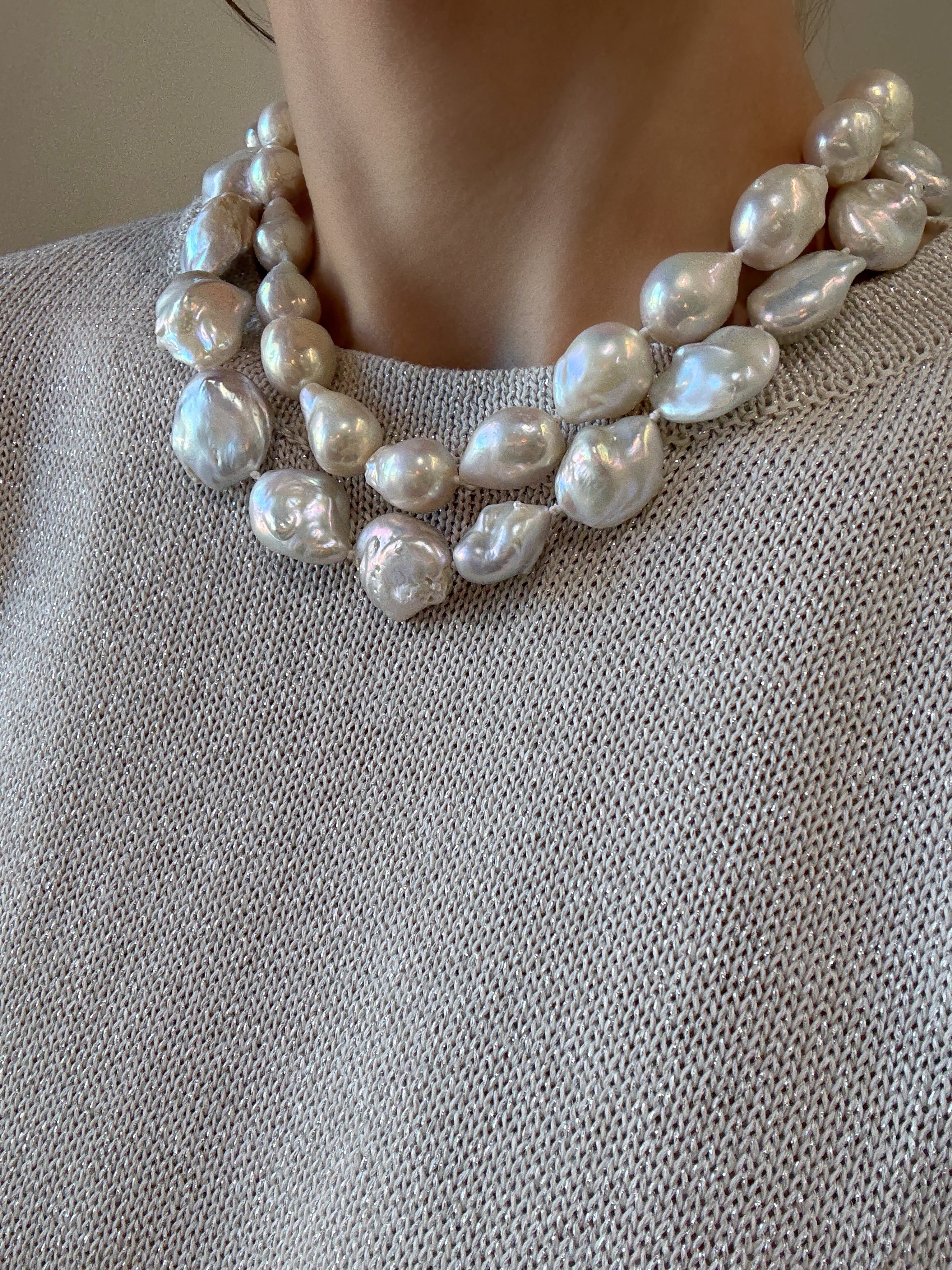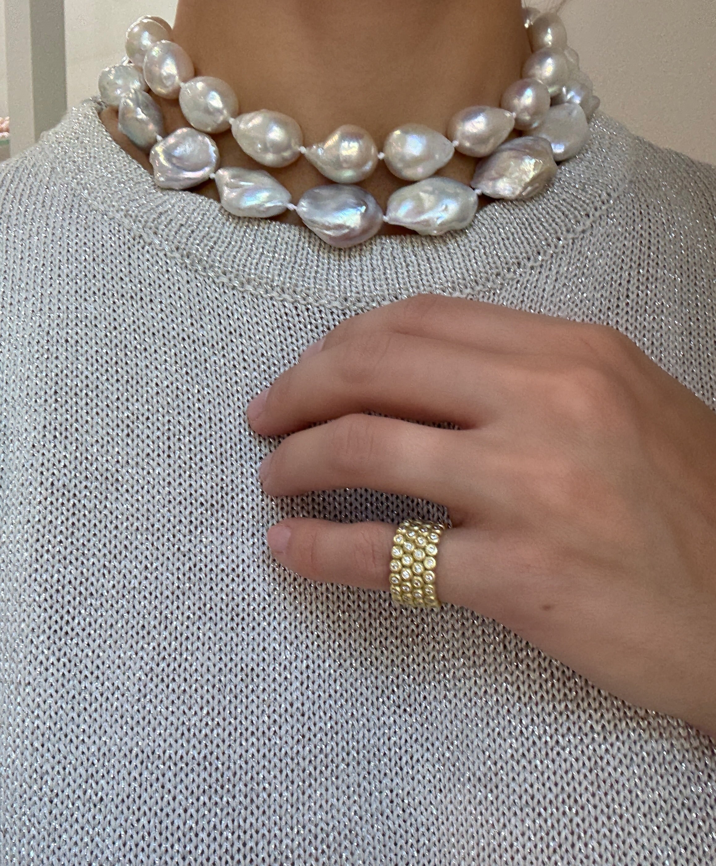 18 Karat Gold Cloud Coin Freshwater Pearl Necklace