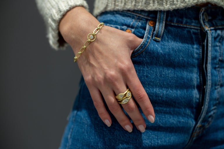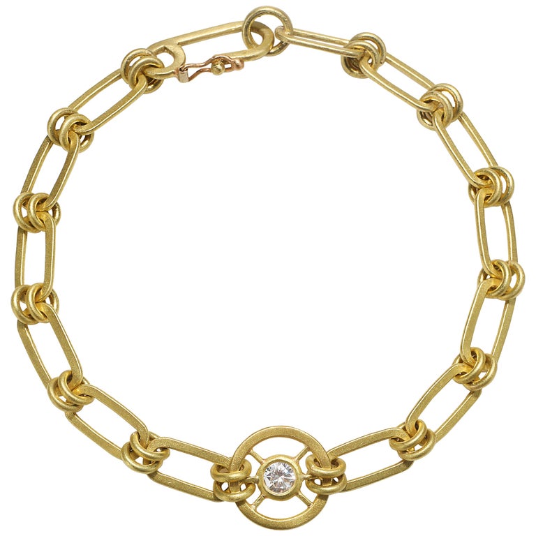 18 Karat Gold Paperclip Chain Bracelet with Diamond Wheel