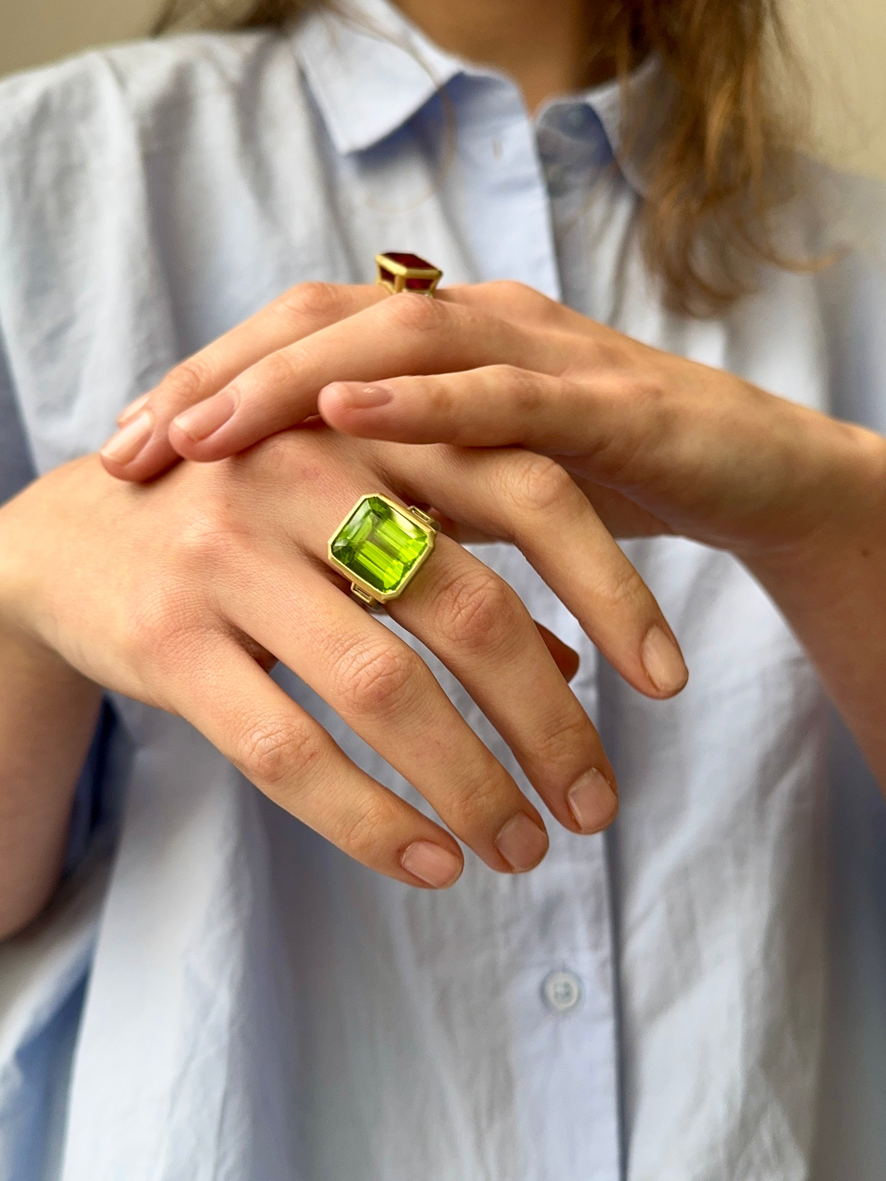 Shown stacked with 18 Karat Gold Pink Tourmaline and Diamond Ring, sold separately.