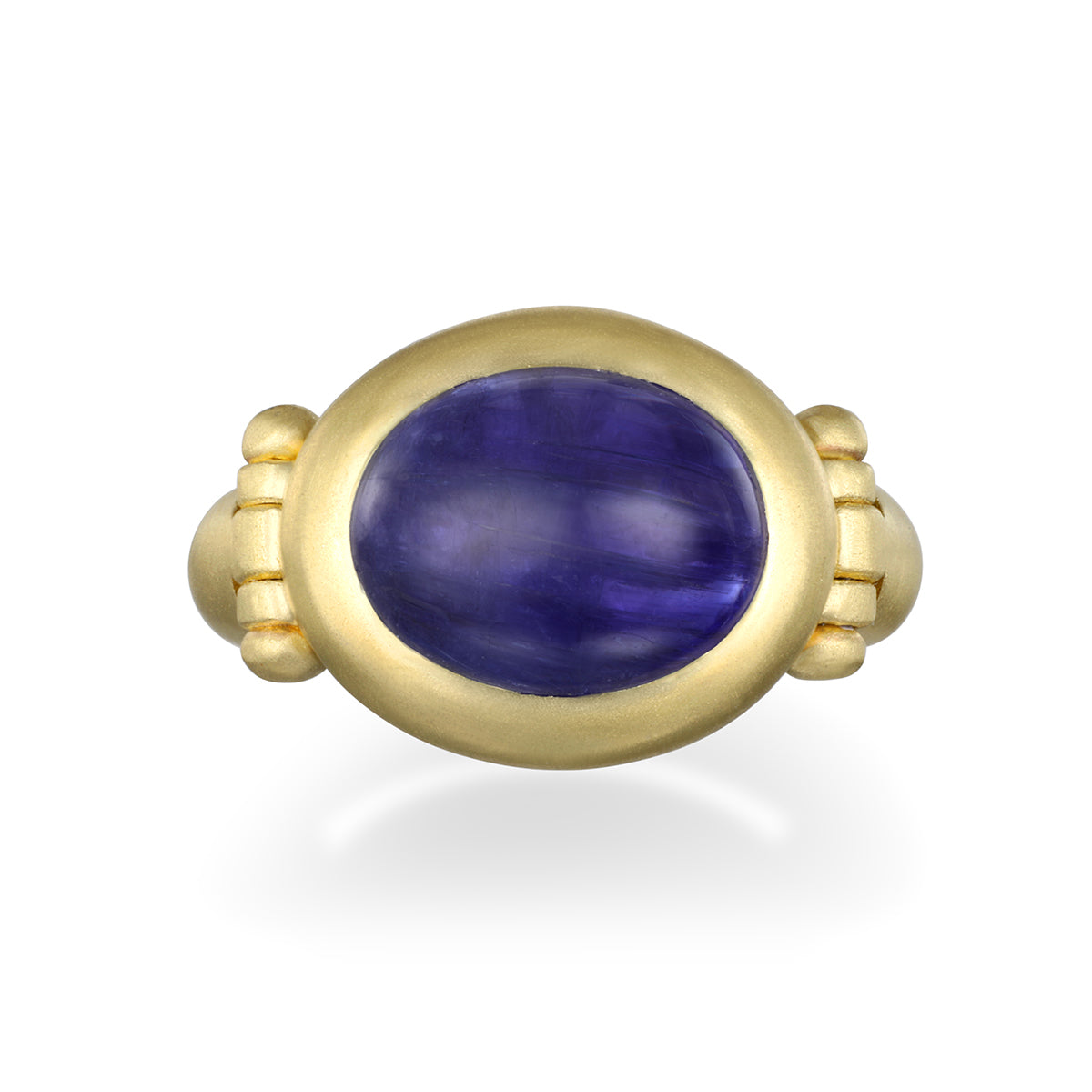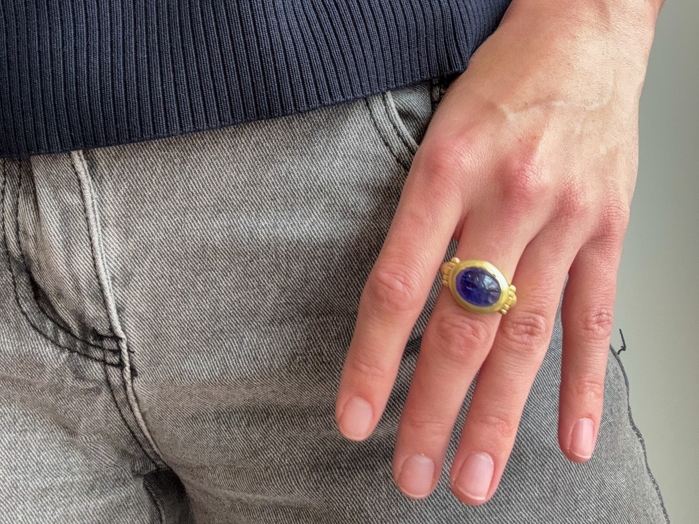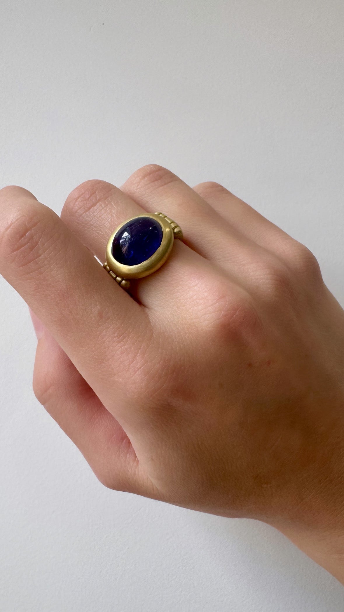 18 Karat Gold Tanzanite Cabochon Hinge Ring - 8 Cts