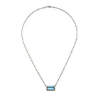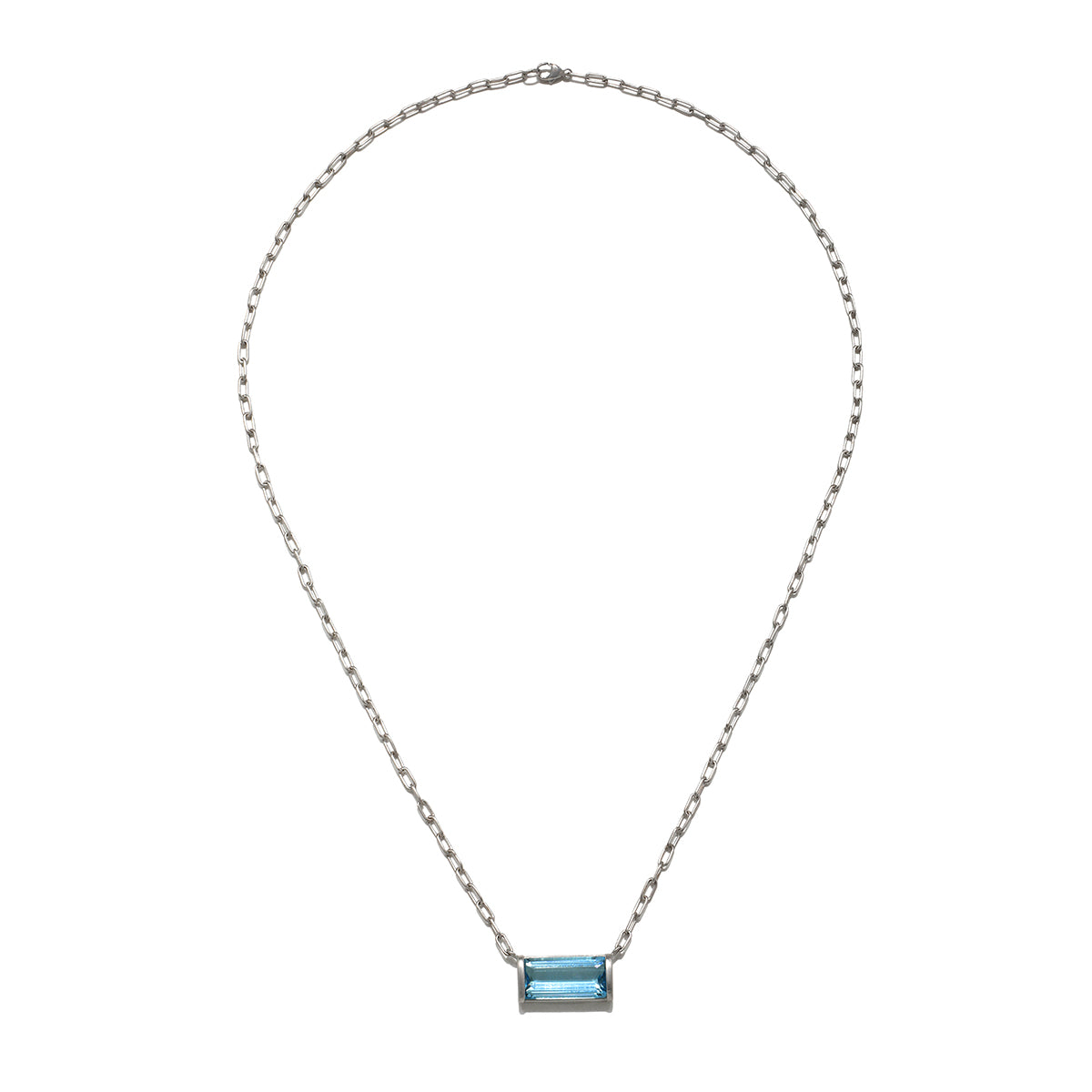 Platinum bar set Aquamarine pendant necklace - mini paperclip chain