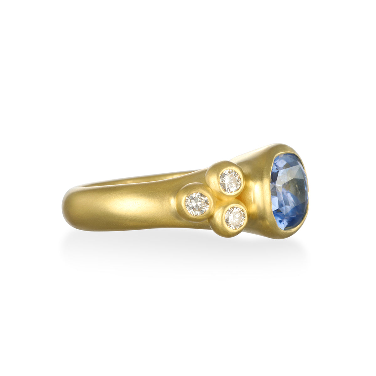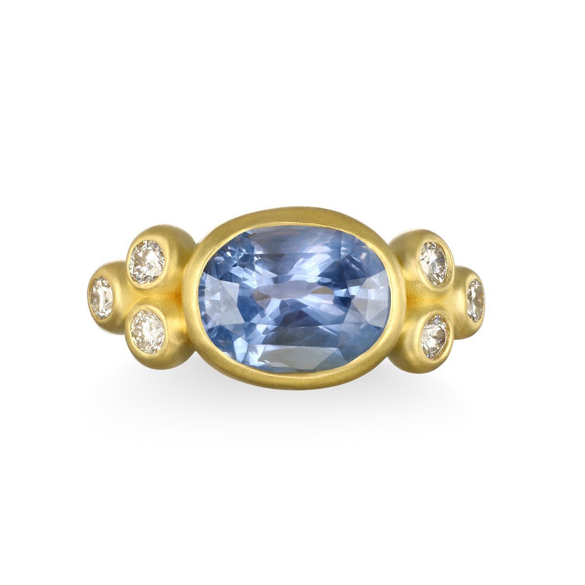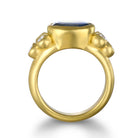18 Karat Gold Ceylon Blue Sapphire and Triple Diamond Ring