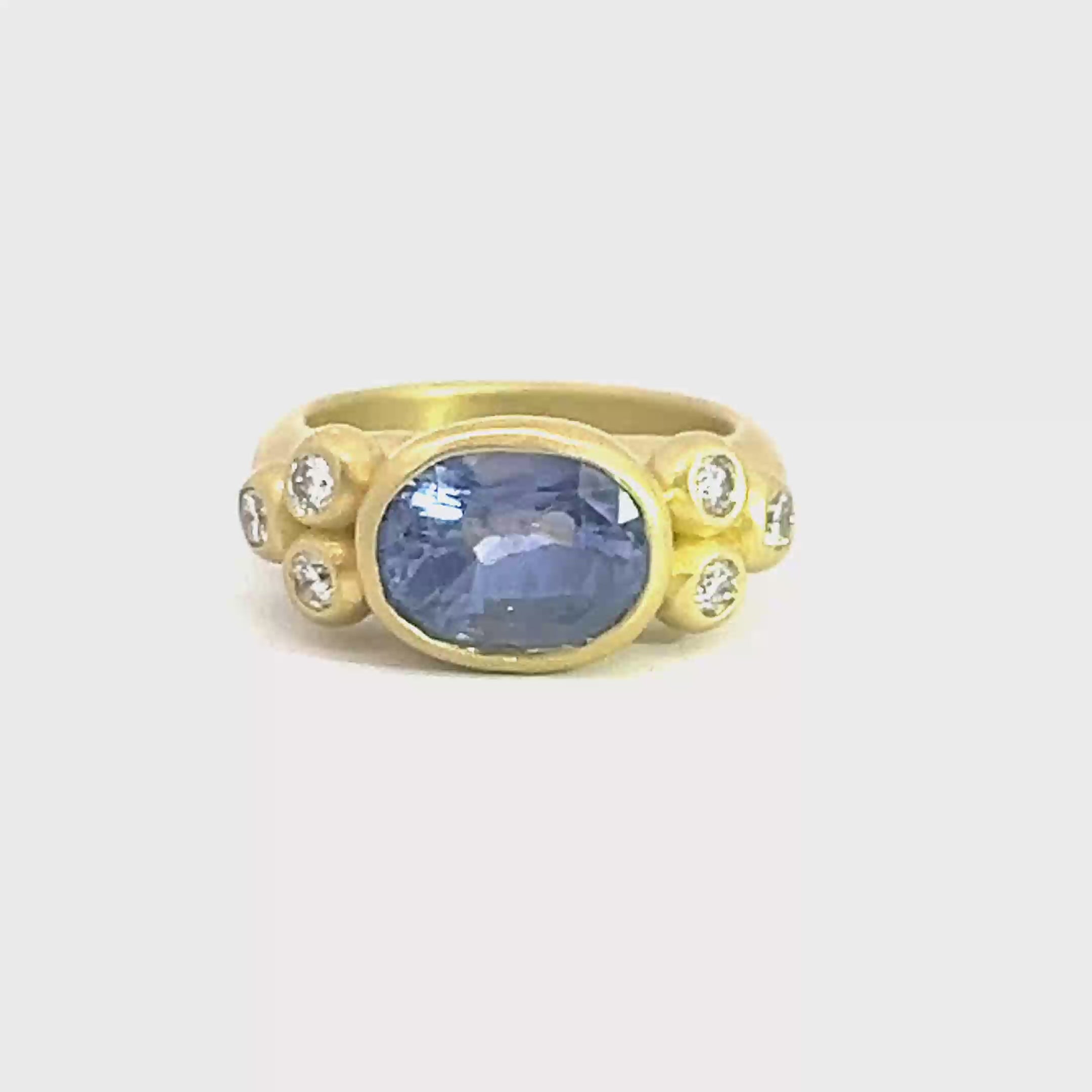 18k gold Ceylon Blue Sapphire and Diamond ring