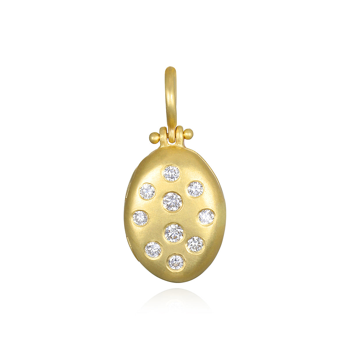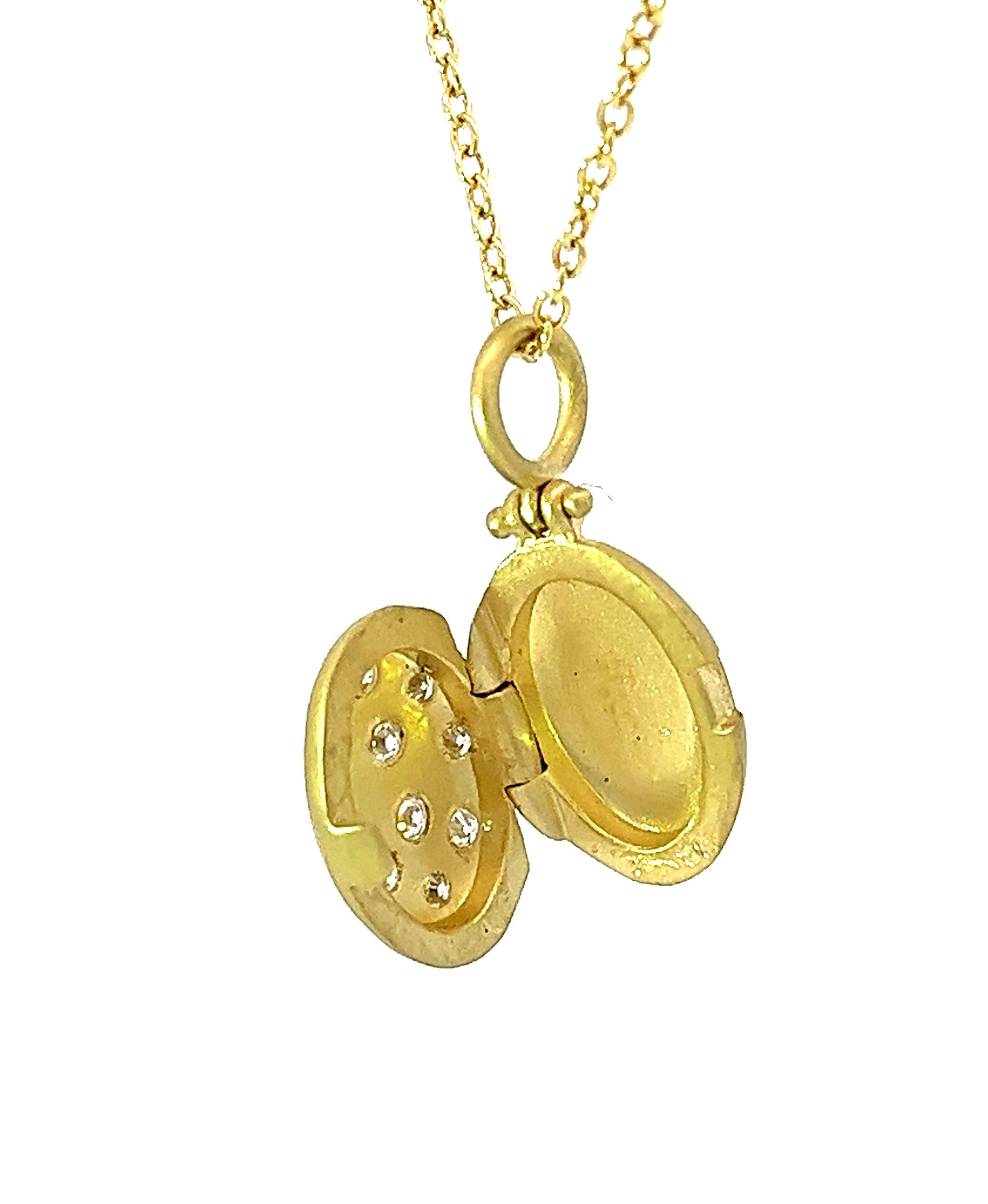 18k Gold Diamond Small Oval Locket with Burnished Diamonds