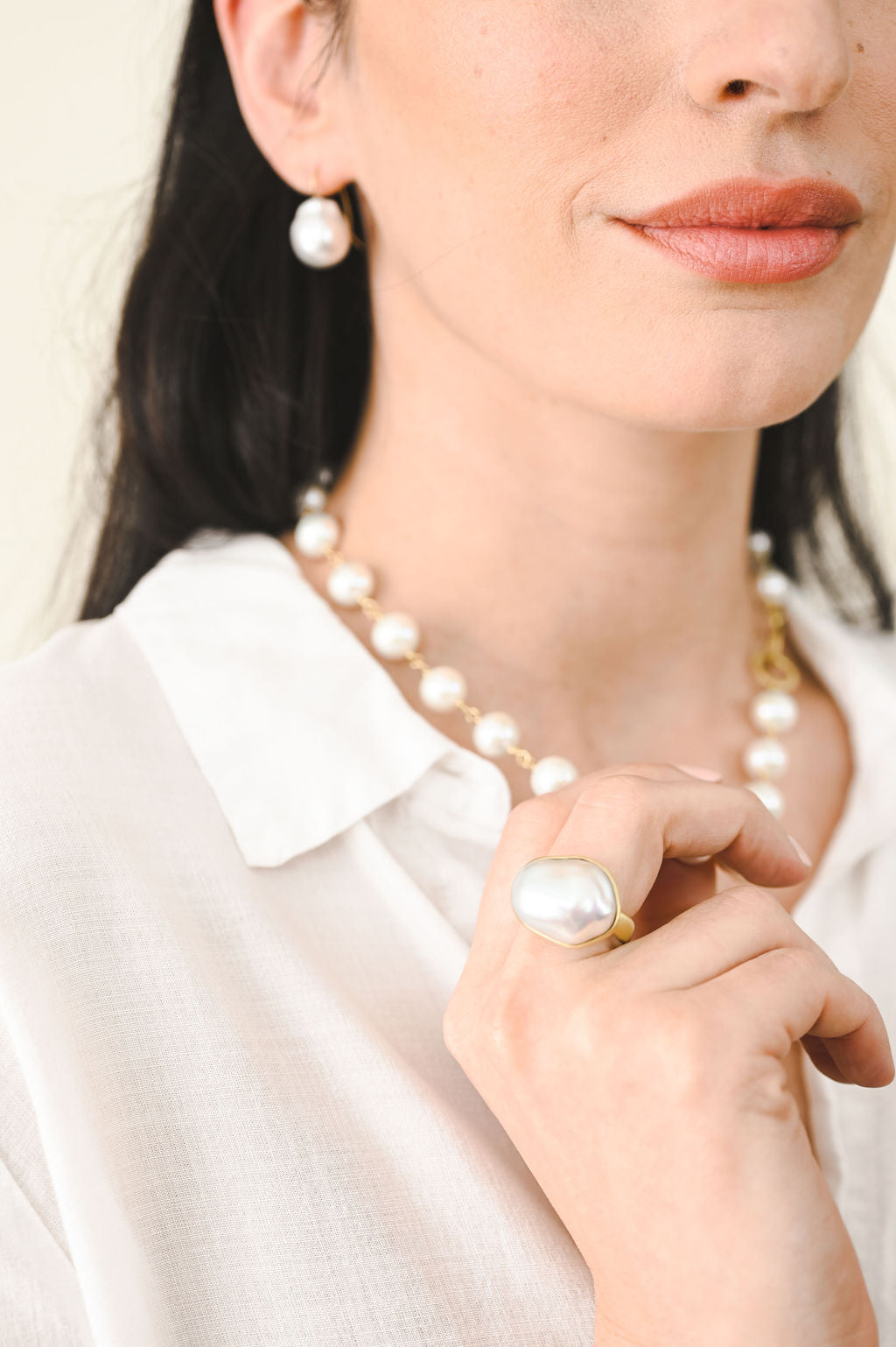 18 Karat Gold White Baroque Freshwater Pearl Ring