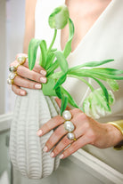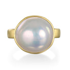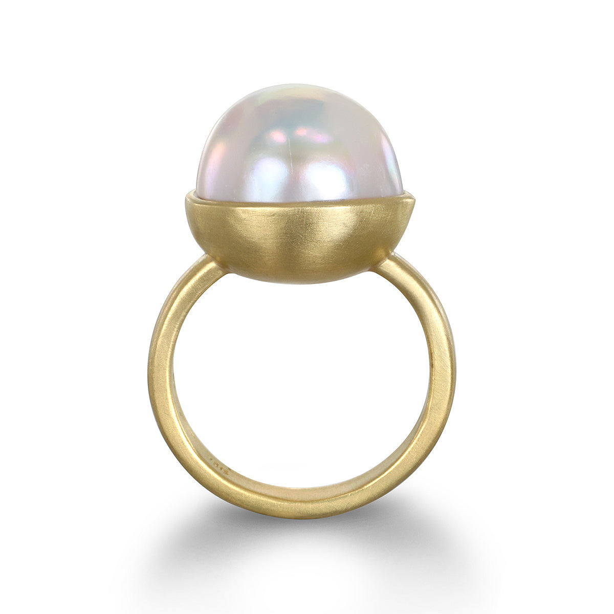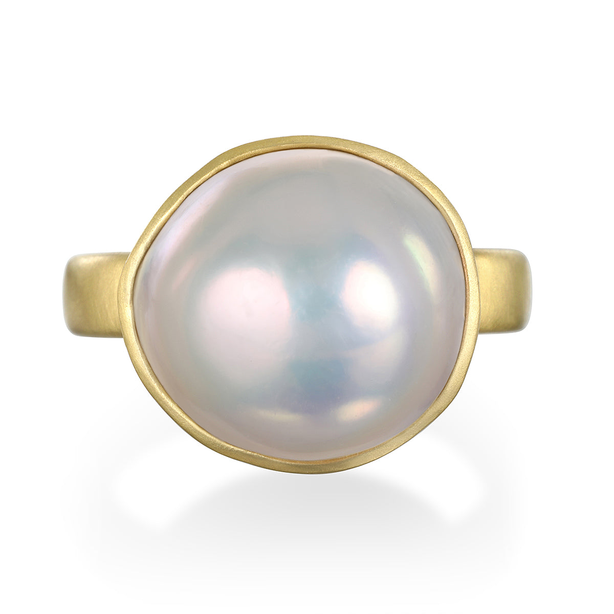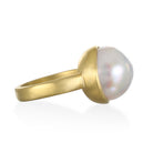 18 Karat Gold White Baroque Freshwater Pearl Ring is bezel set and highlights the classic beauty of pearls made wearable for today's contemporary styles.