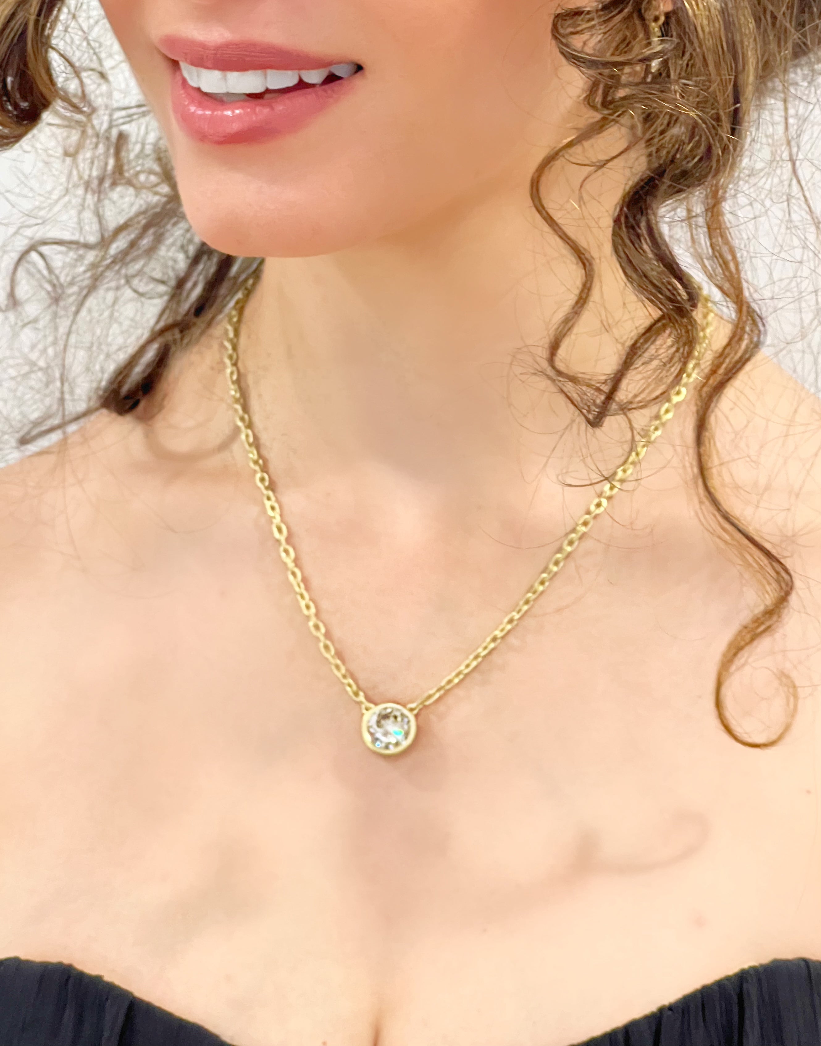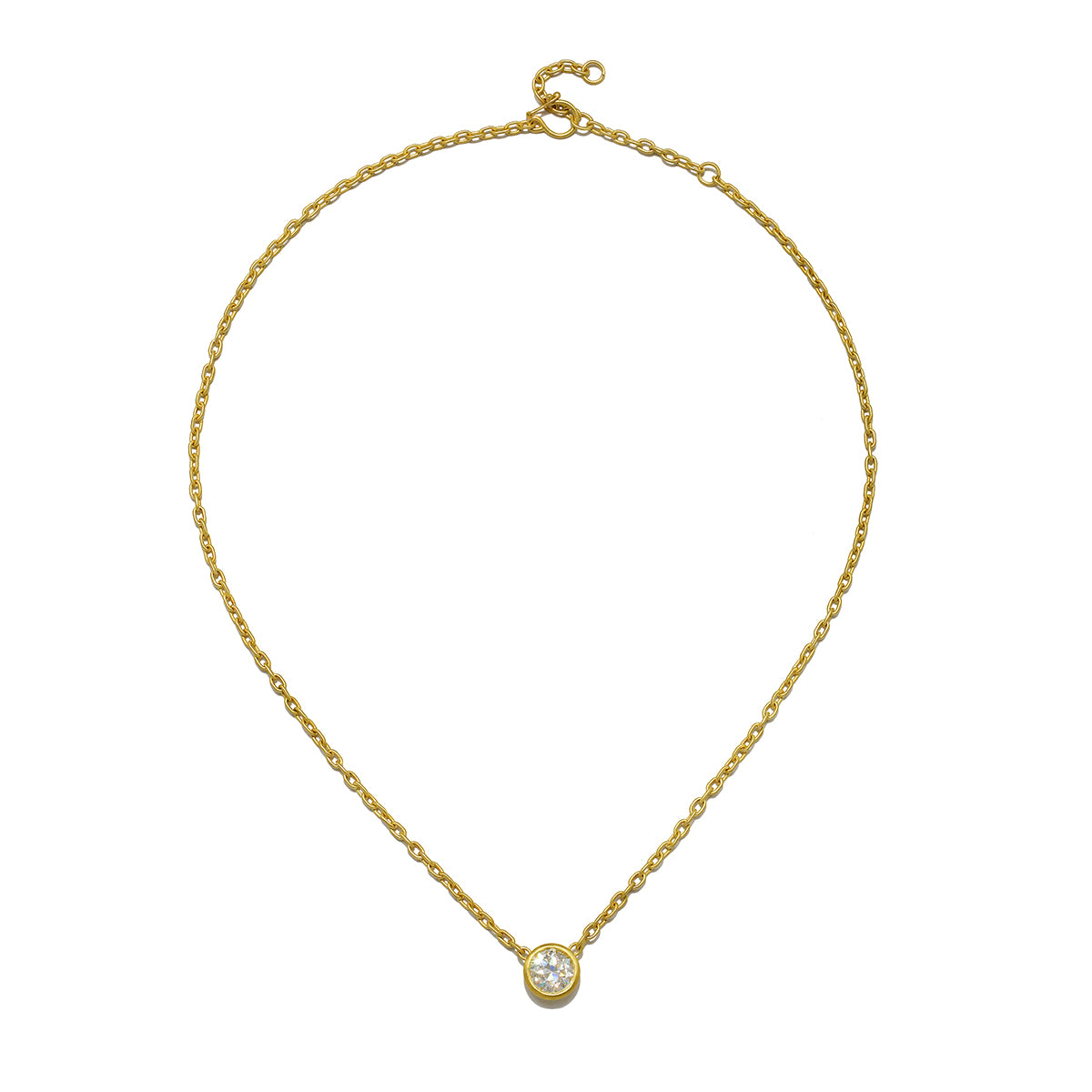 18k Gold Diamond Bezel Necklace On Handmade Chain