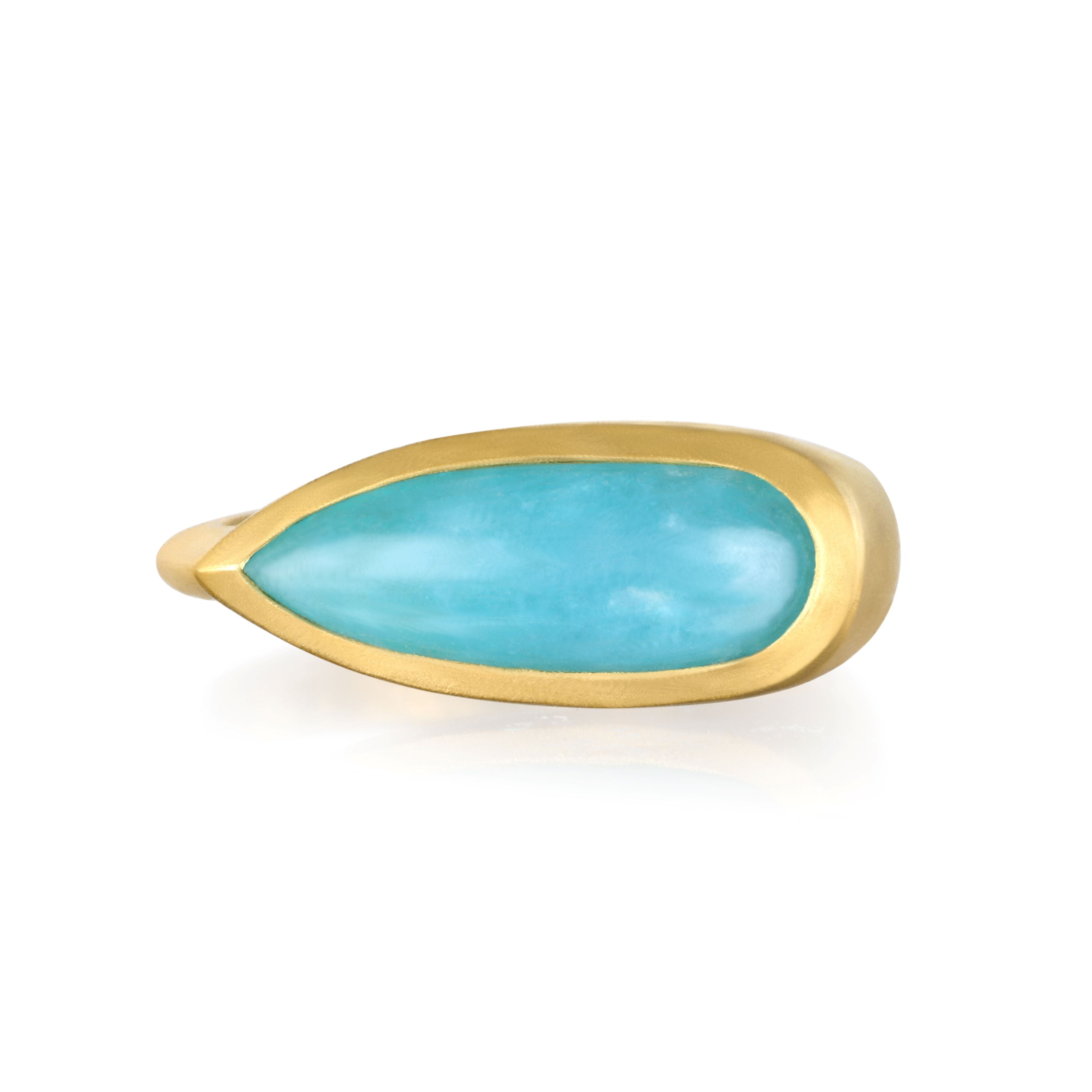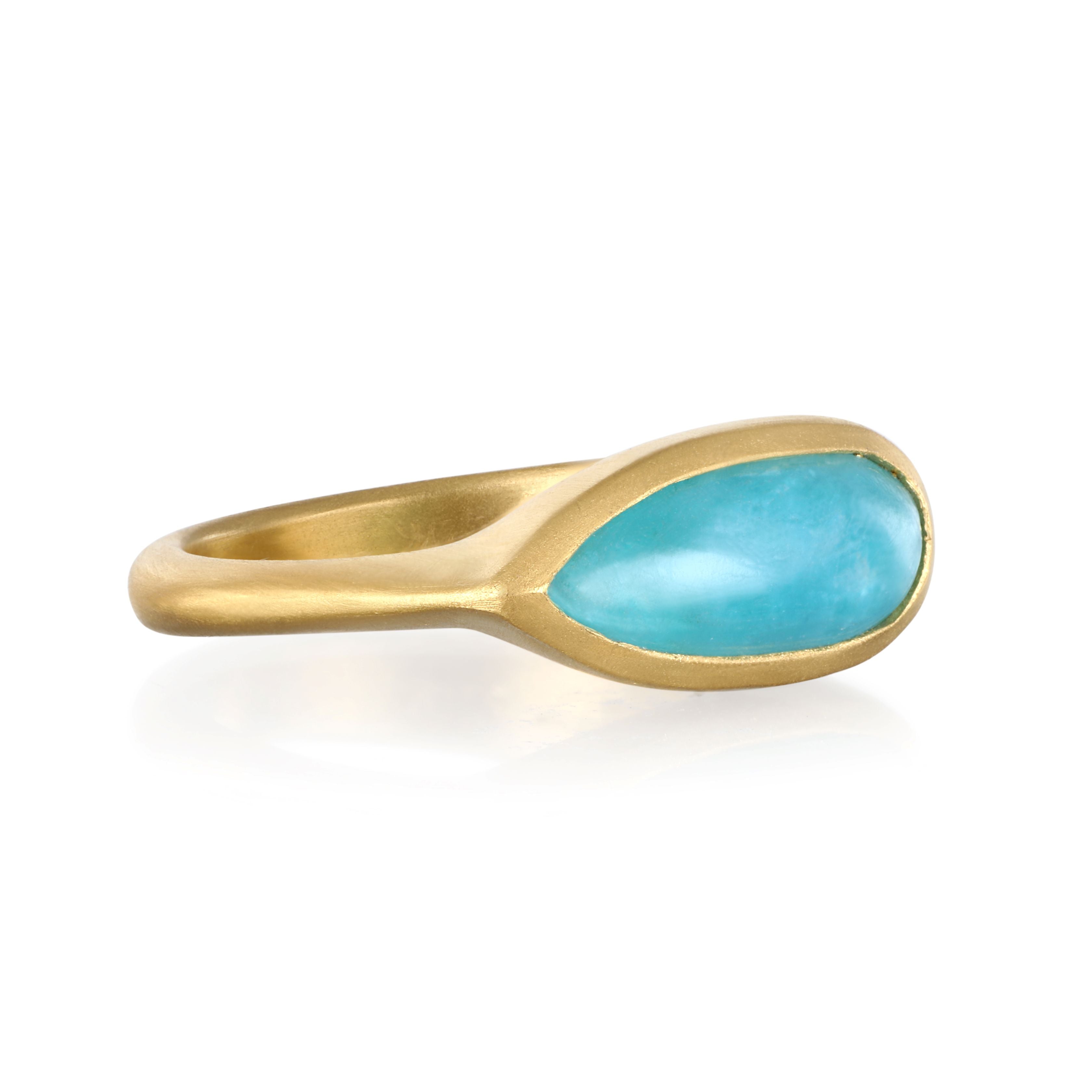18k Paraiba Tourmaline Cabochon Gypsy Ring