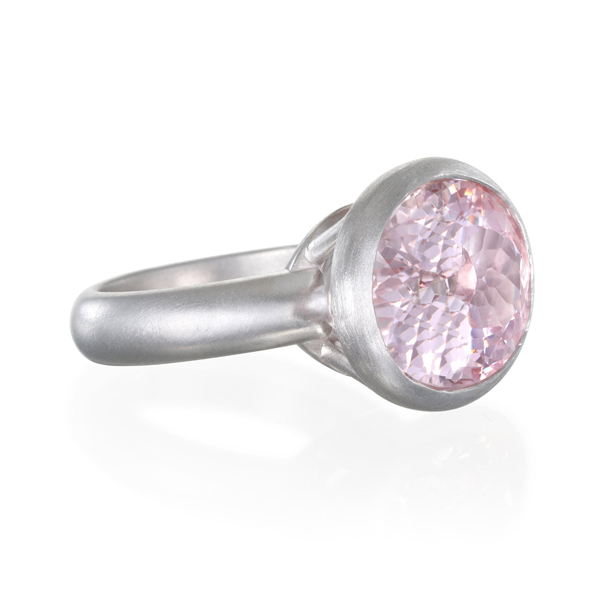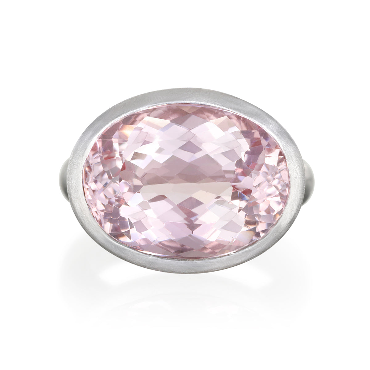 Platinum faceted oval Morganite ring