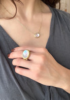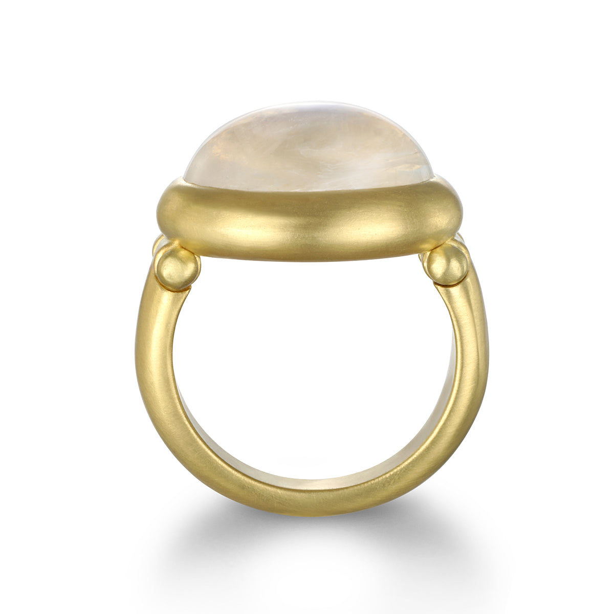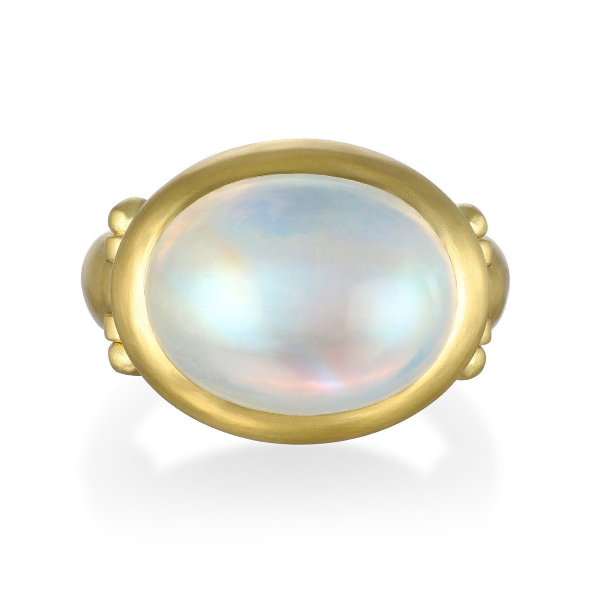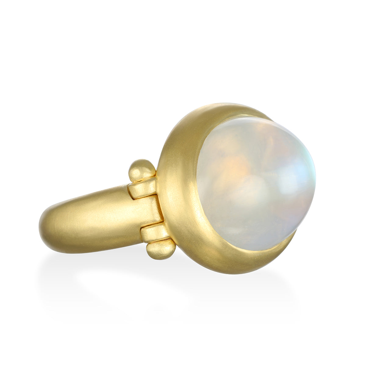 18 Karat Gold Rainbow Moonstone Hinged Ring