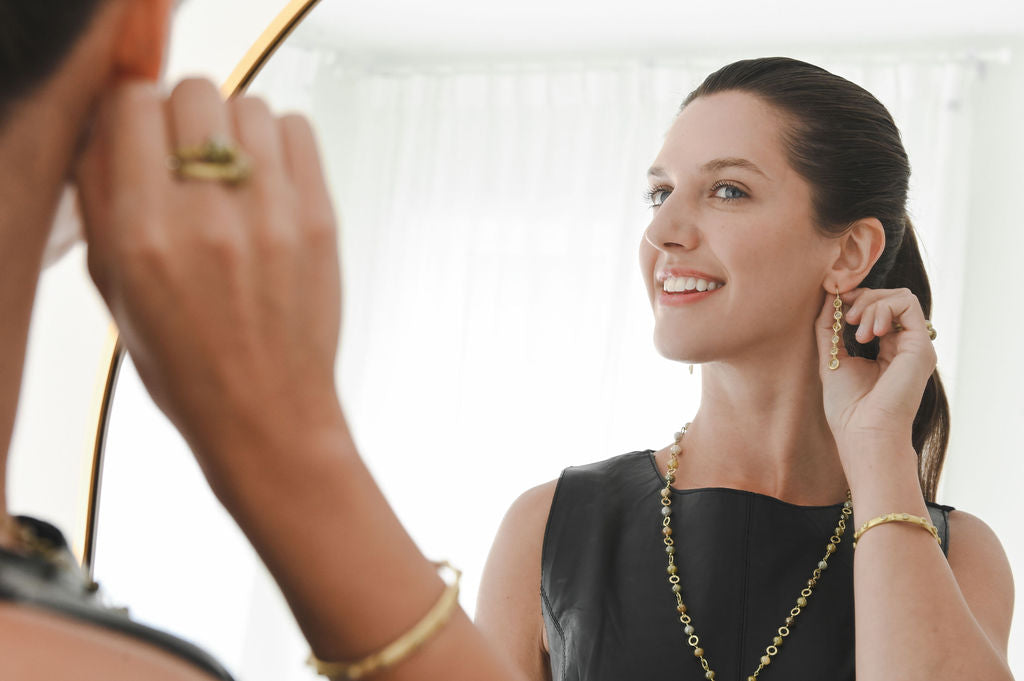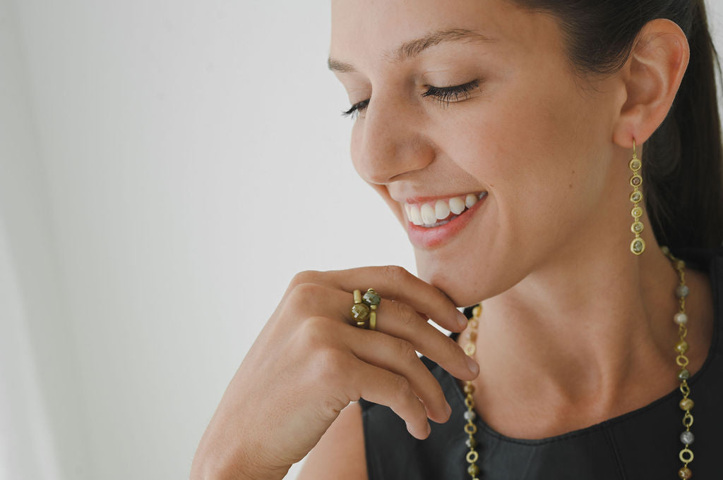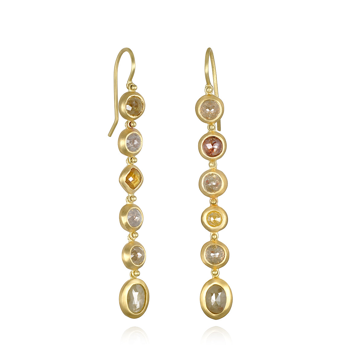 18k Karat Gold Milky Diamond Line Earrings with Granulation Hinge