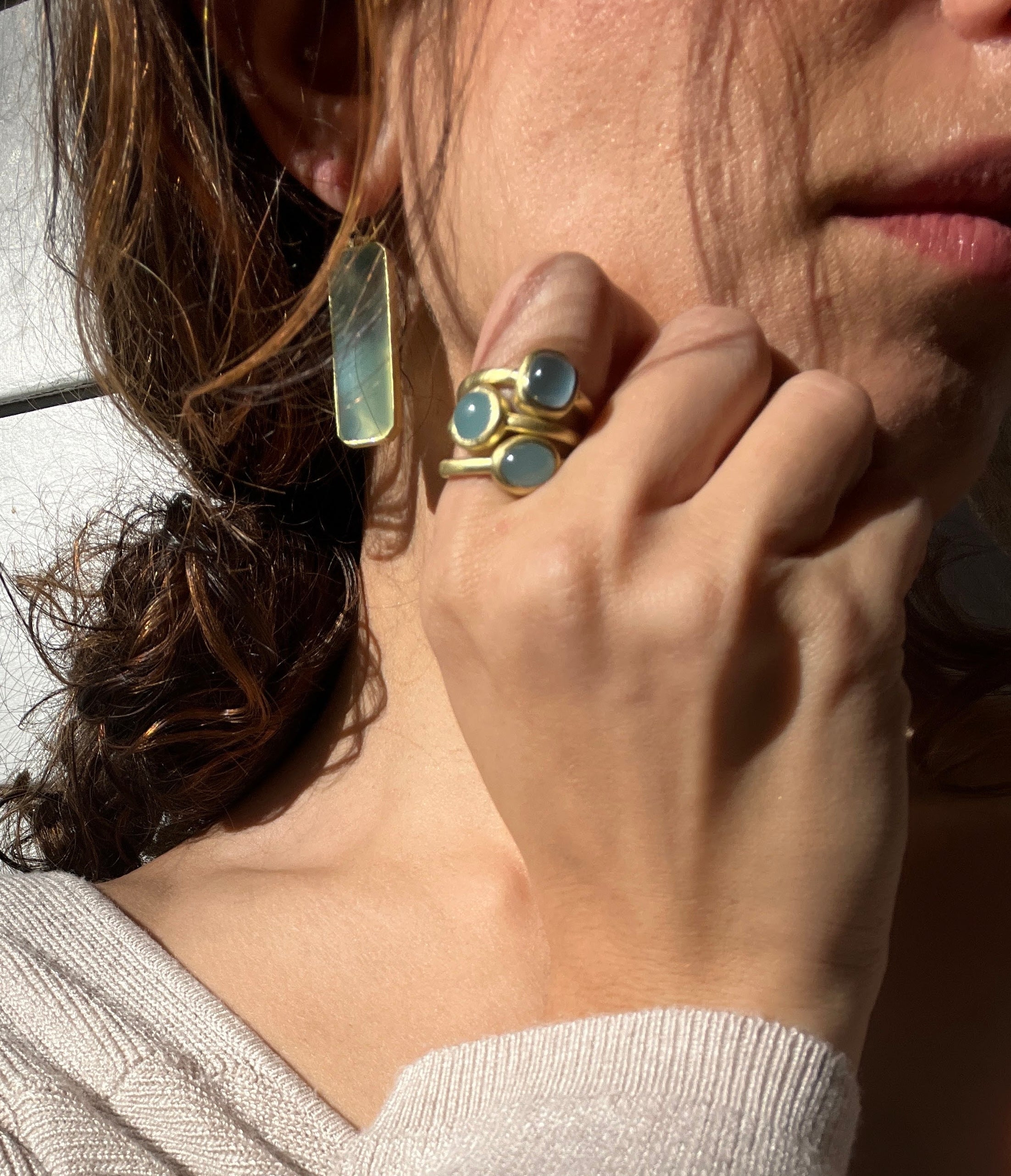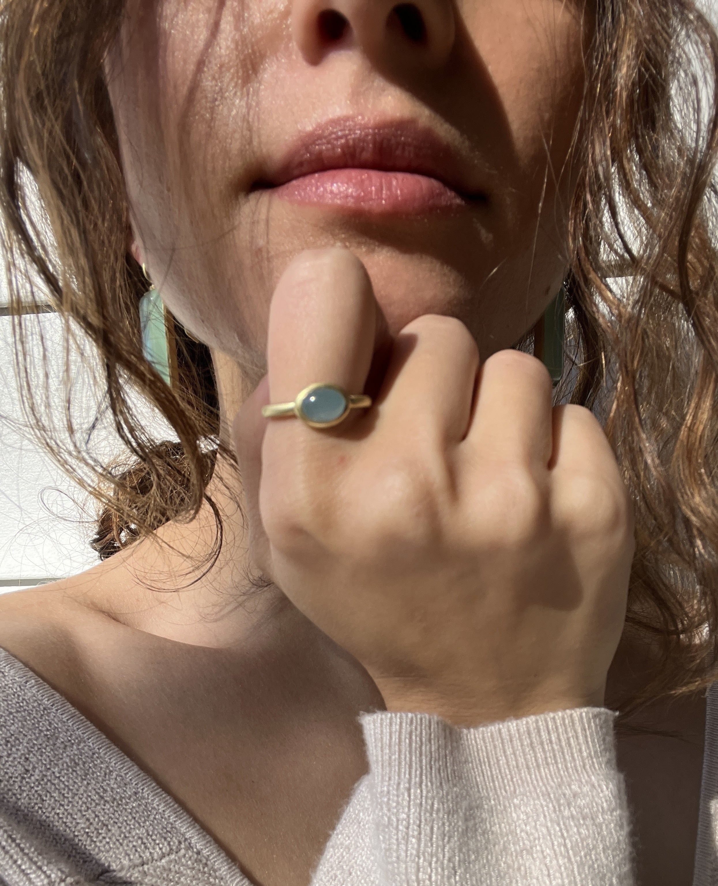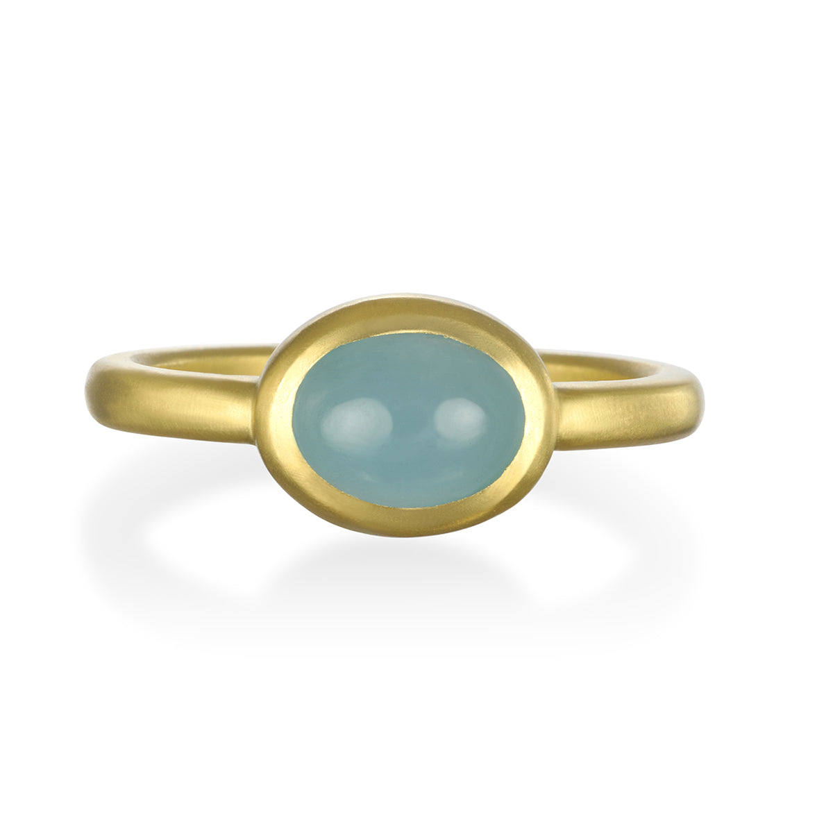 18 Karat Gold Milky Aquamarine Oval Bezel Ring