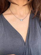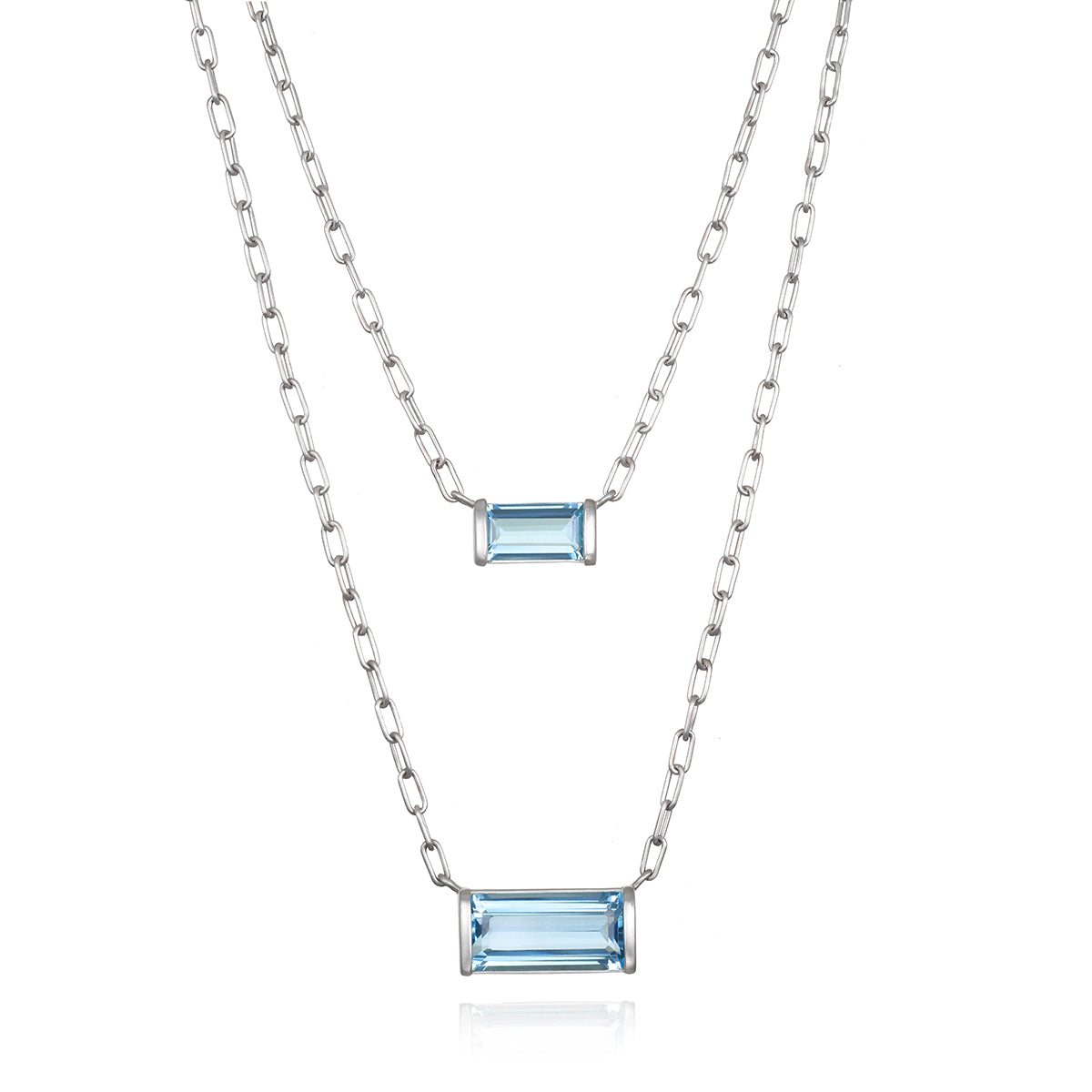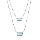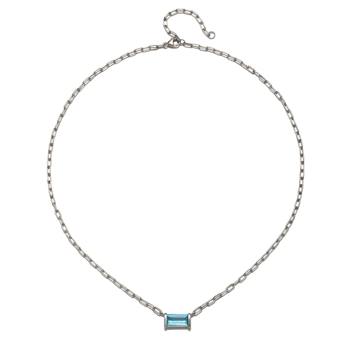Platinum bar set Aquamarine pendant necklace - platinum mini paperclip chain
