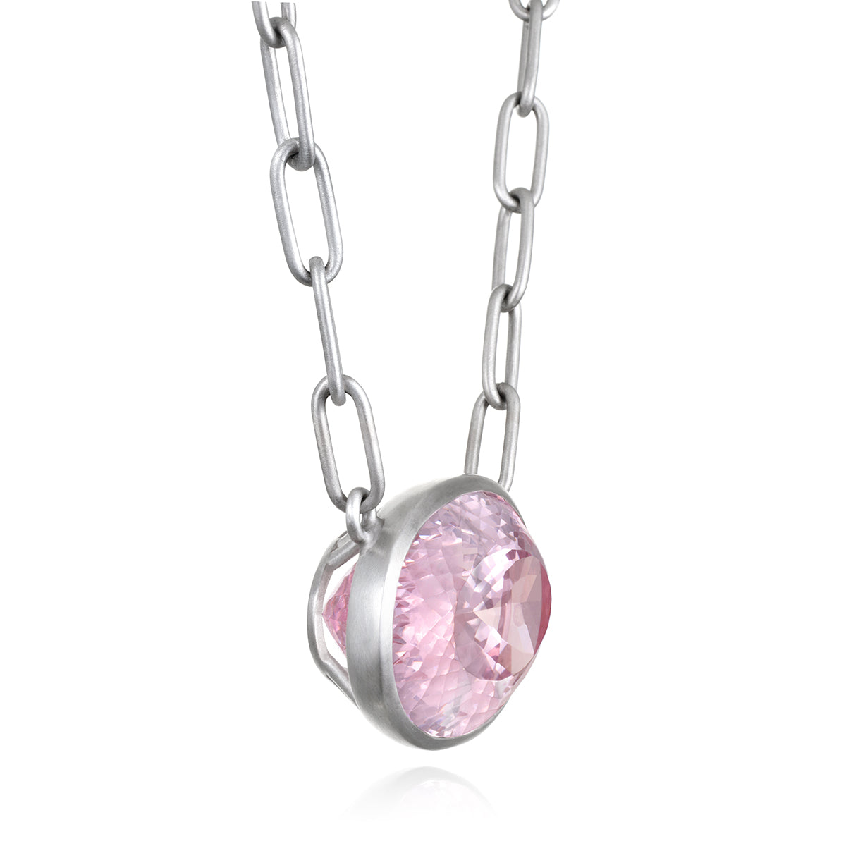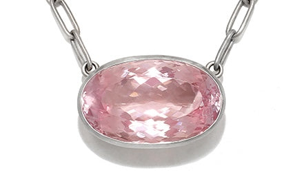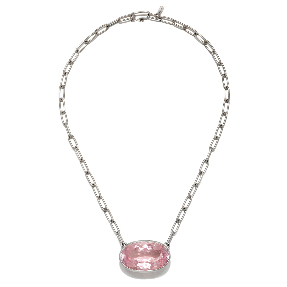 Platinum Faceted Oval Kunzite Paperclip Chain Necklace