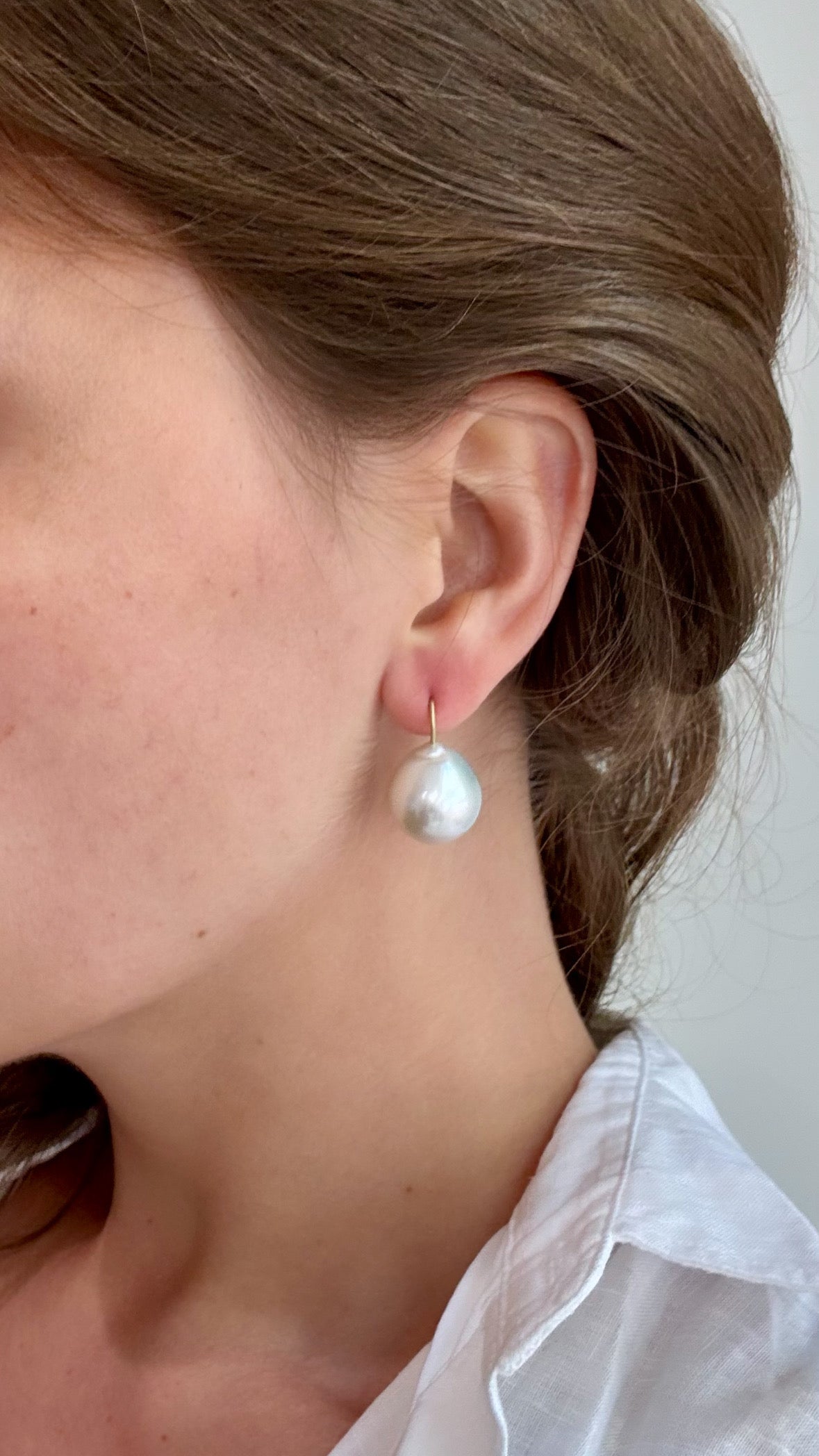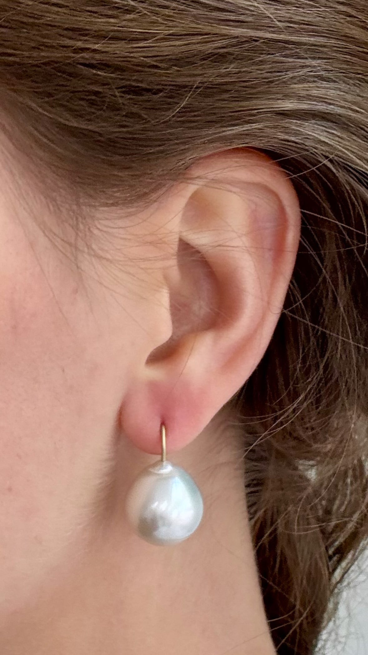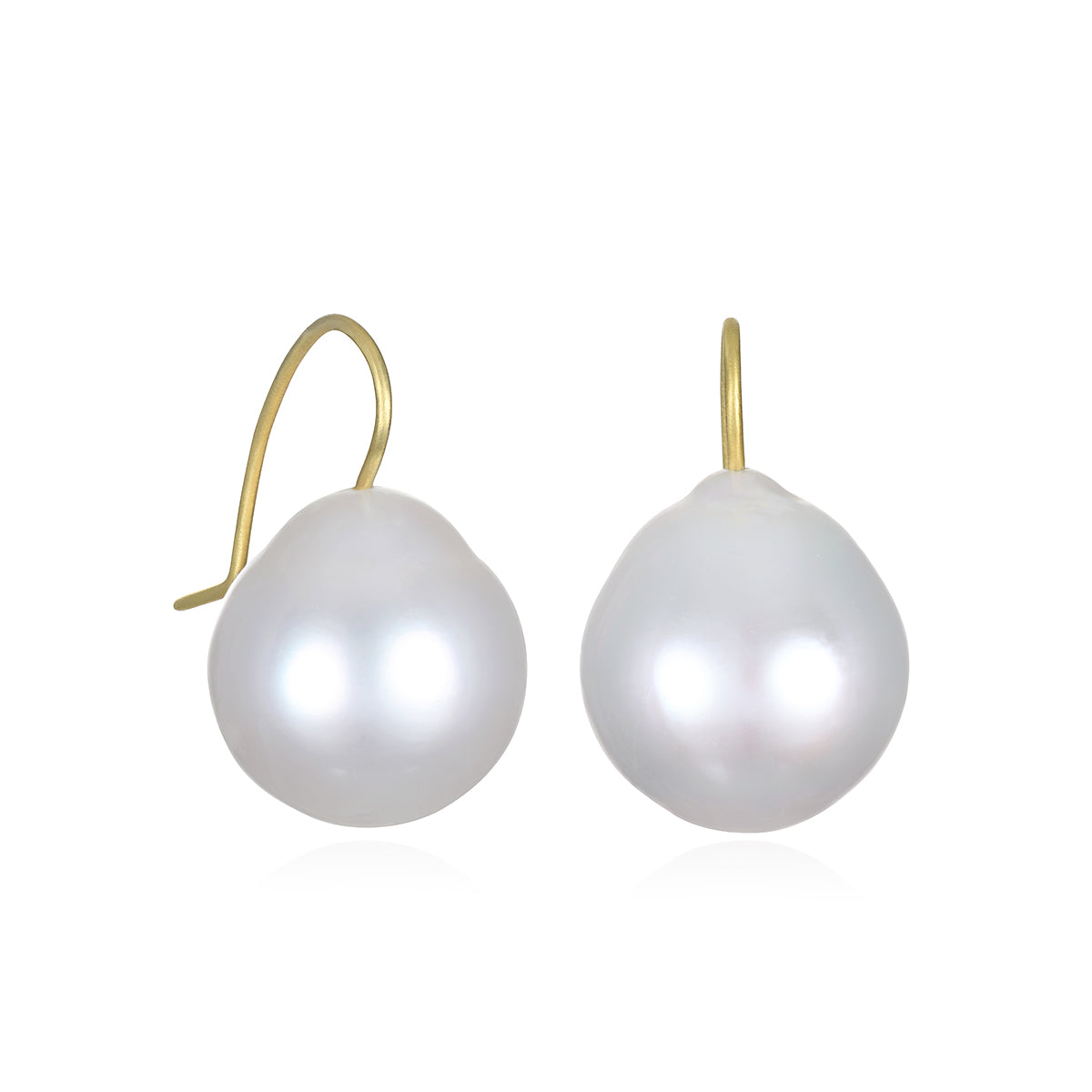 18K Gold White South Sea Baroque Pearl Drop Earring
