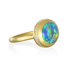 18 Karat Gold Diamond Halo Lightning Ridge Australian Black Opal Ring