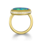 18k gold Diamond halo Lightning Ridge Australian Black Opal ring