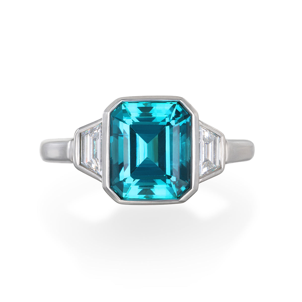 One-of-a-kind Platinum Indicolite Tourmaline Diamond Ring