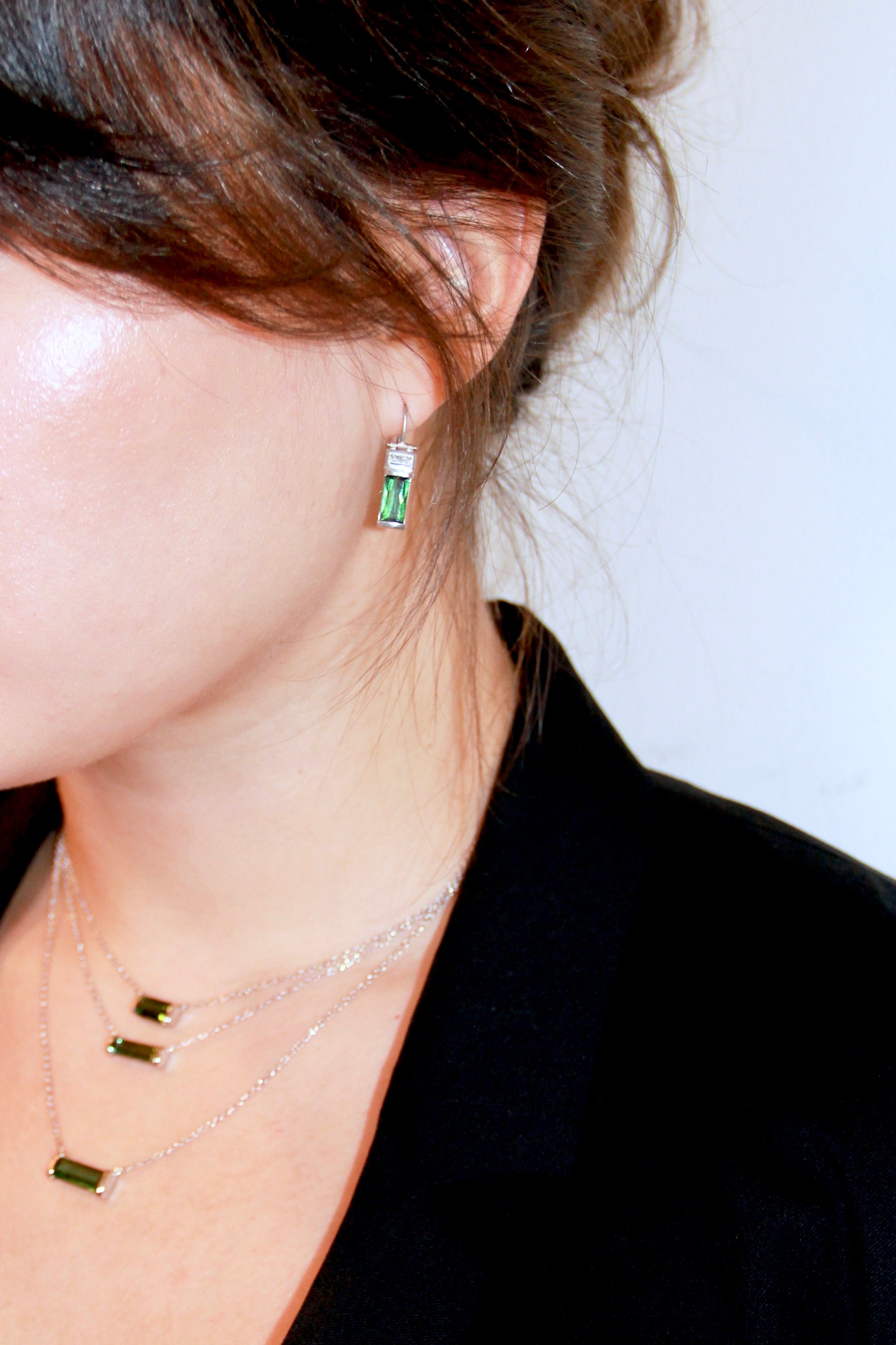18 Karat White Gold Bar Set Green Tourmaline Necklace