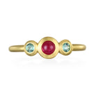 18k gold Ruby and Tourmaline three-stone bezel ring
