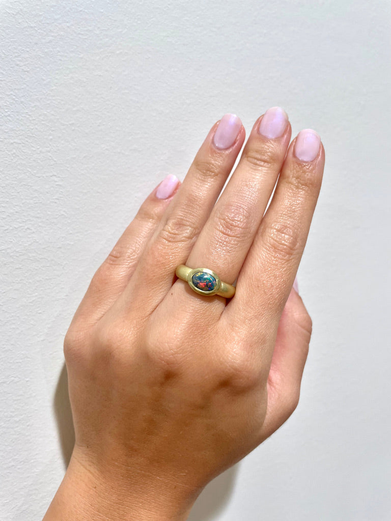18 Karat Gold Lightning Ridge Australin Black Opal Ring - Red