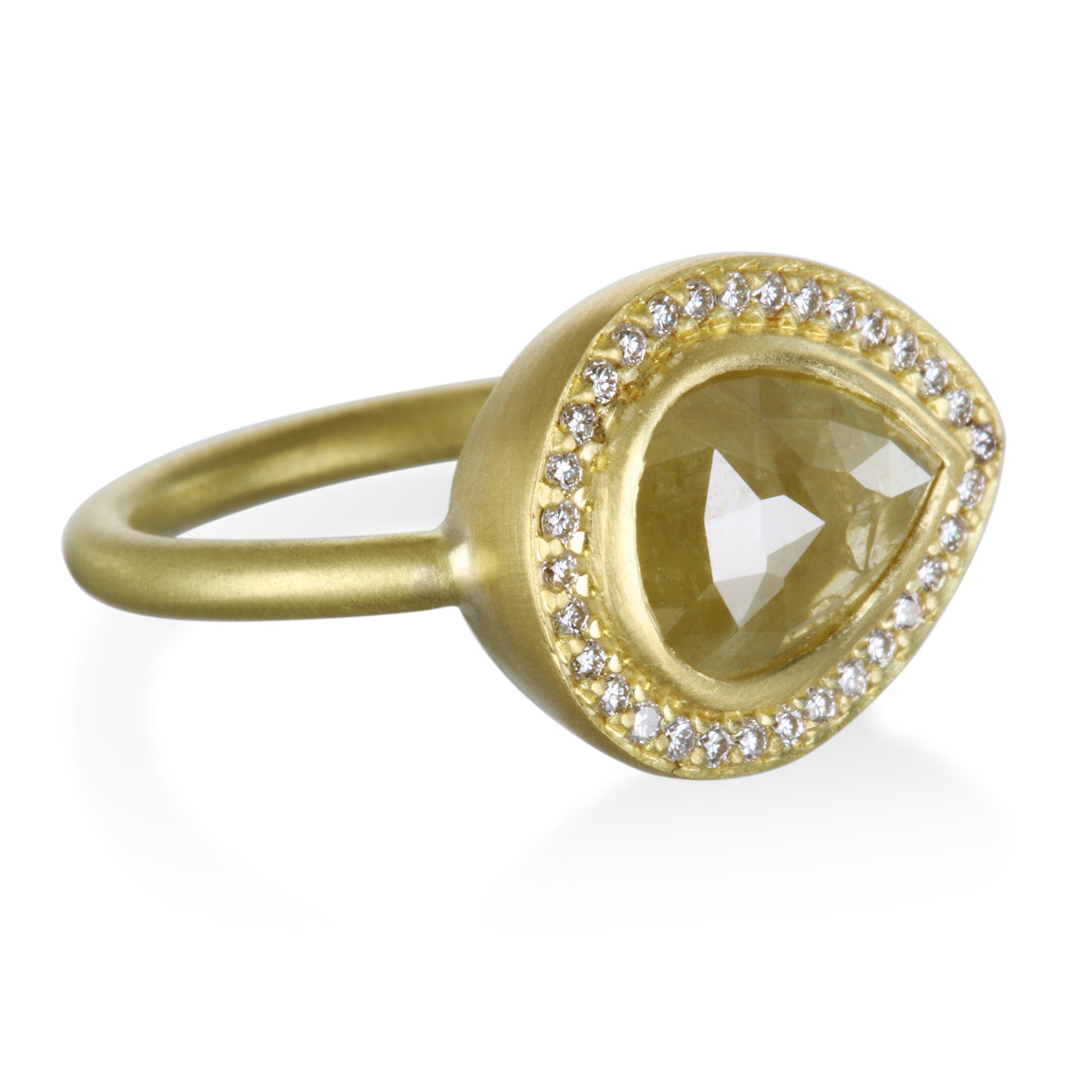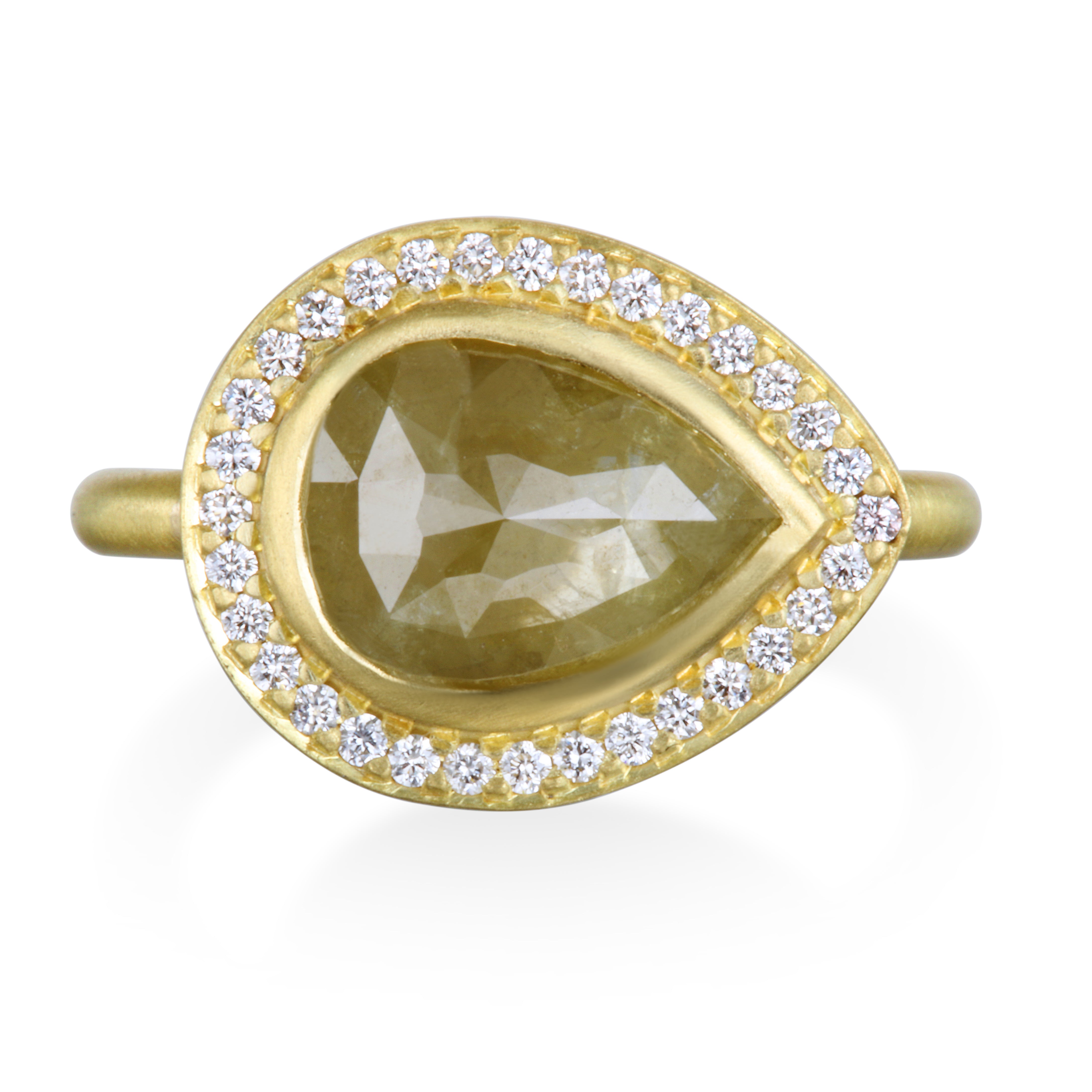 18 Karat Gold Pear-Shaped Raw Diamond Ring