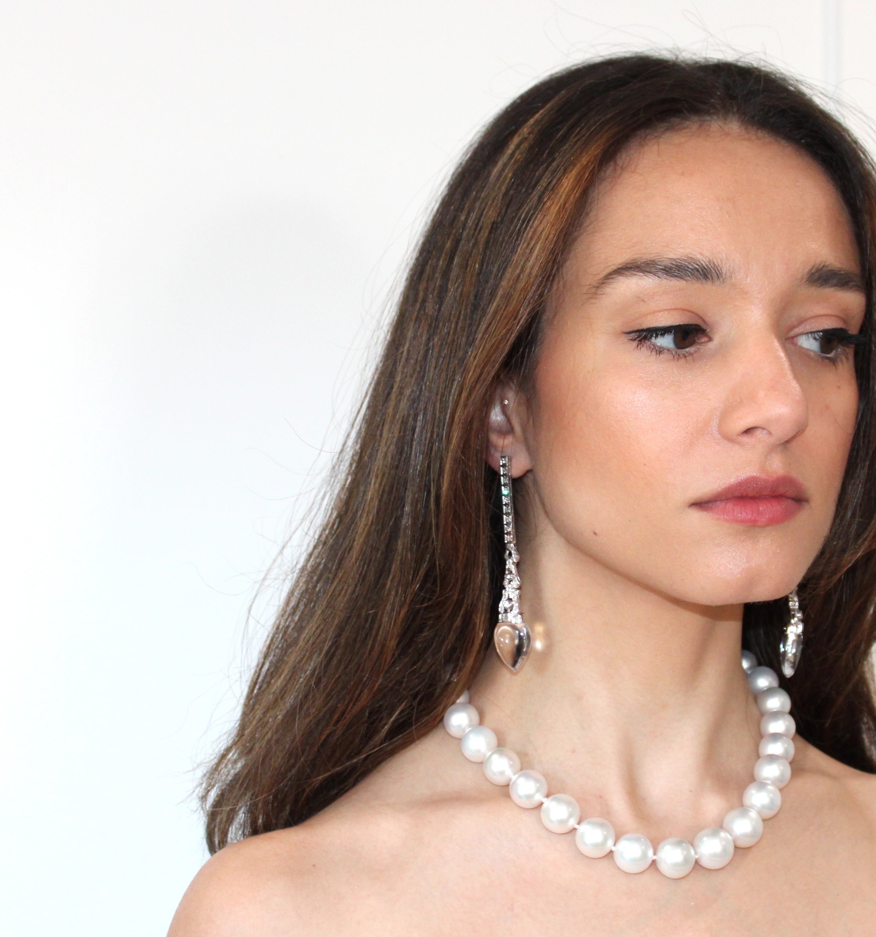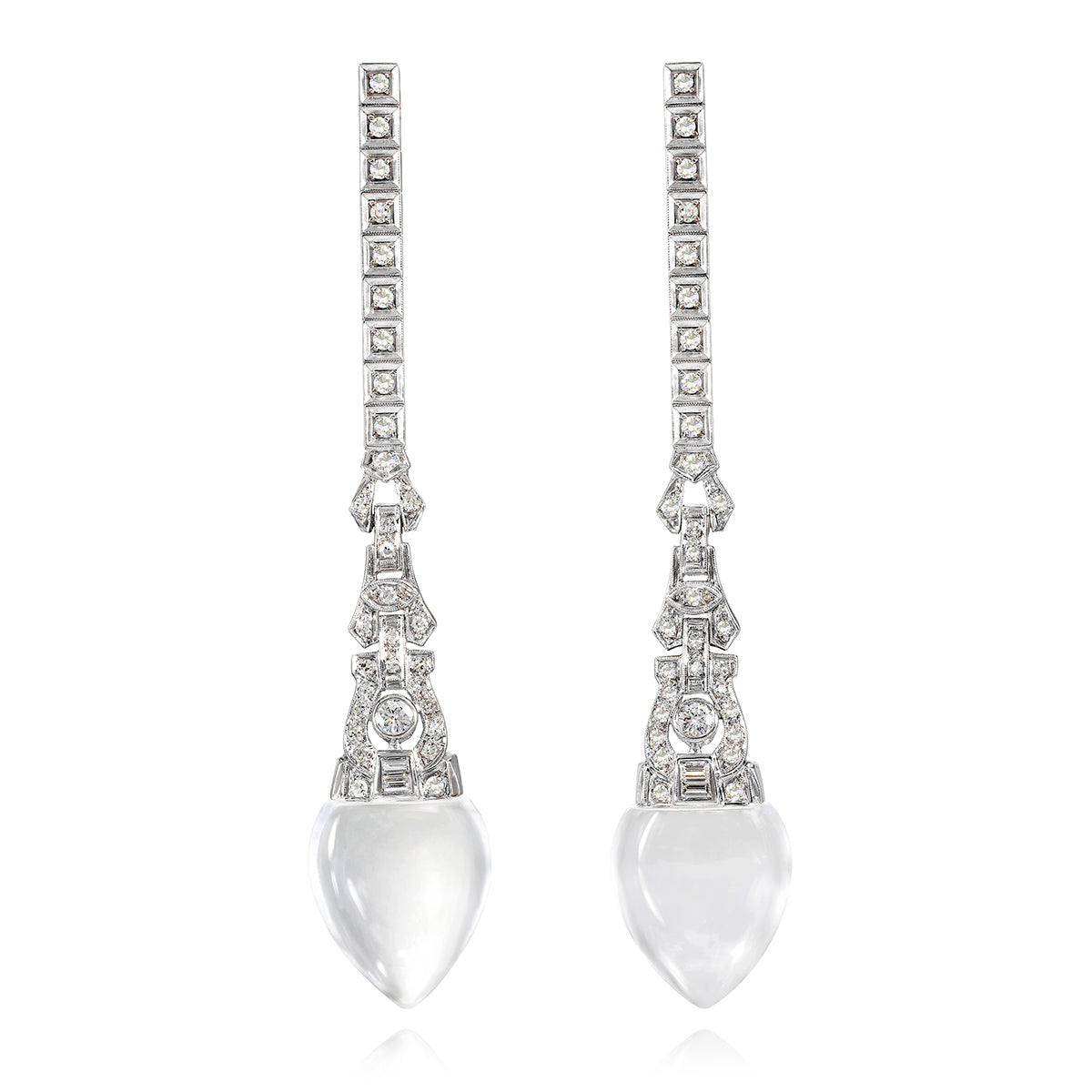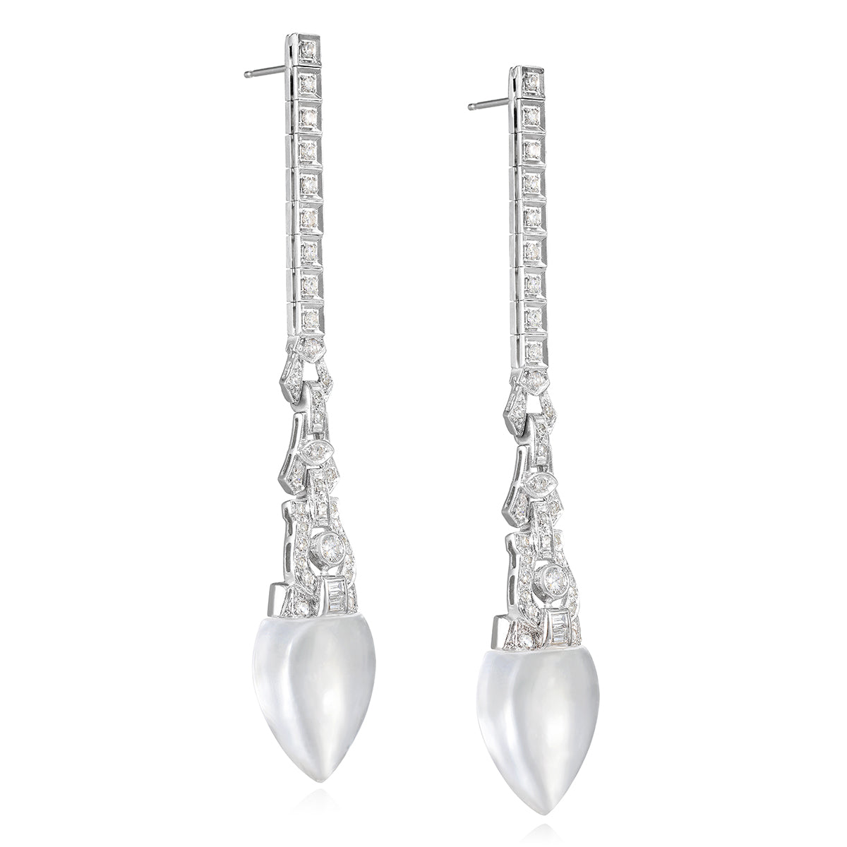 Vintage 14K White Gold Diamond Earrings with Acorn Rock Crystal Quartz Drops