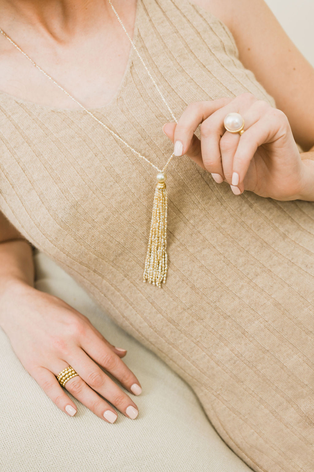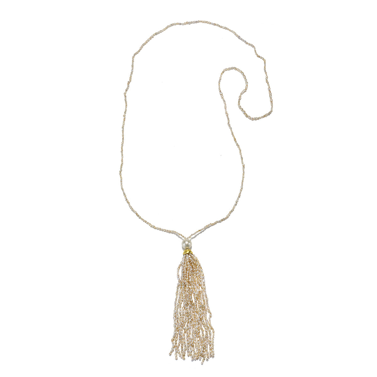 18 Karat Gold Natural Keshi Pearl Necklace with Tassel