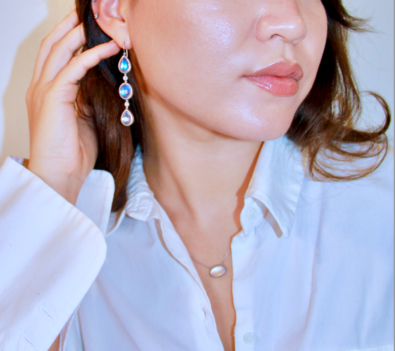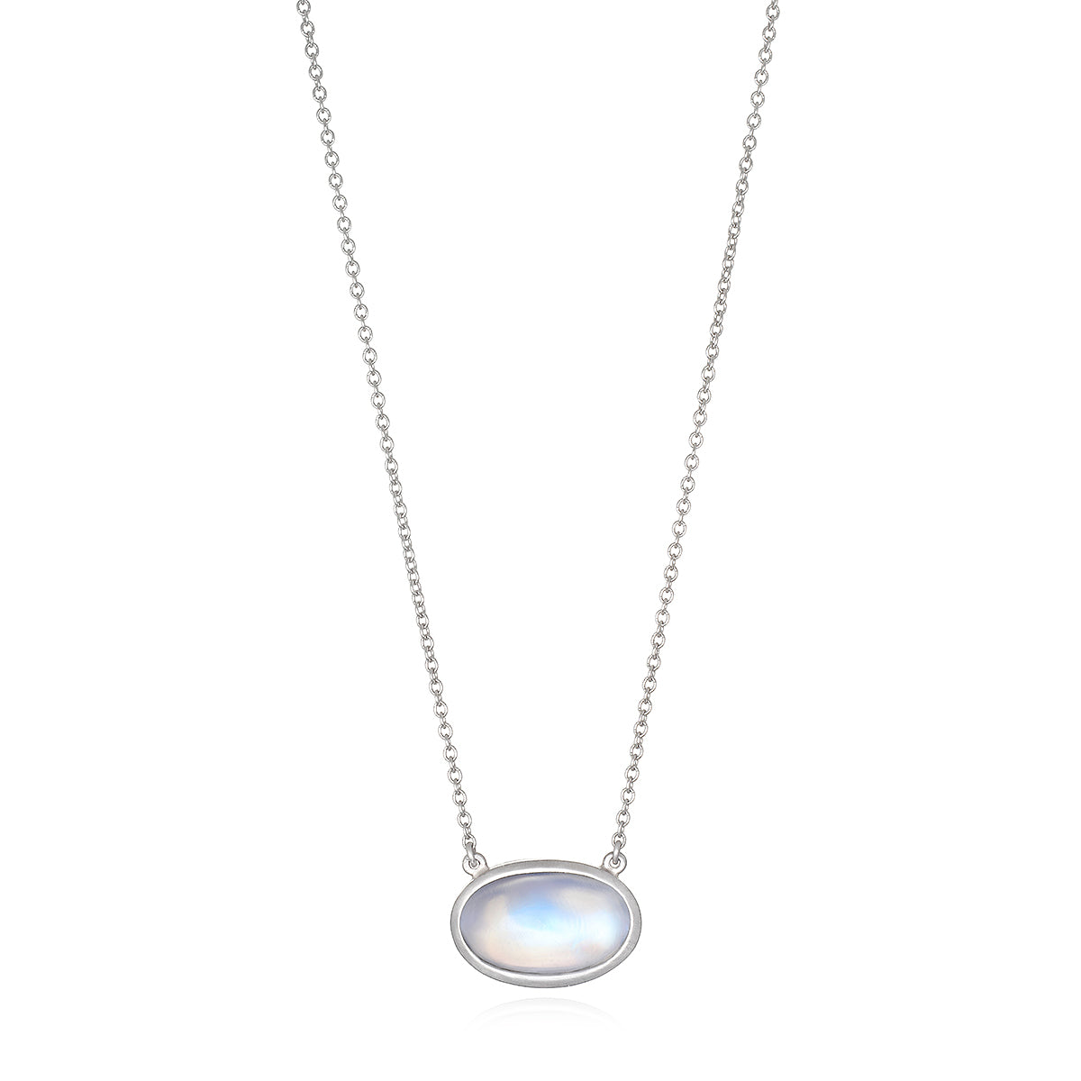 Platinum Bezel Oval Ceylon Moonstone Necklace