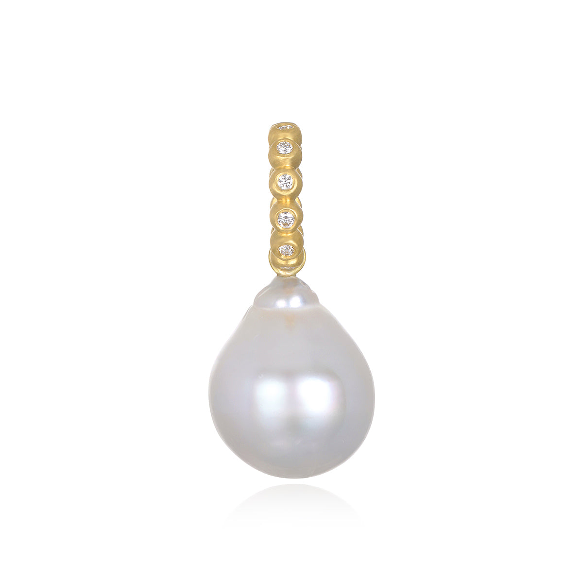 18k Gold and Diamond South Sea Baroque Pearl Pendant with Diamond Granulation Bail