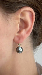 18k Black Tahitian Pearl Earrings with Round Brilliant Cut Diamonds