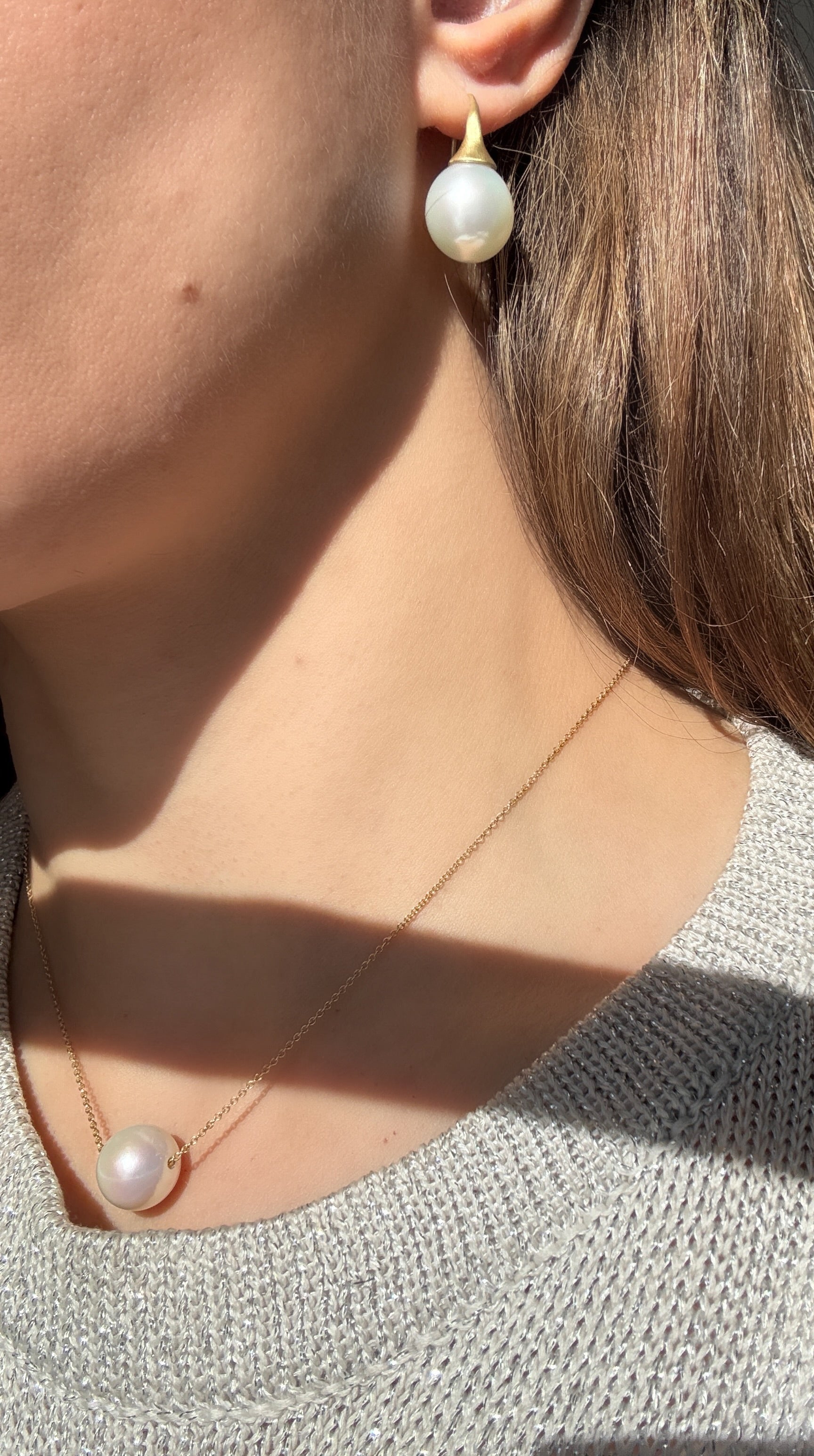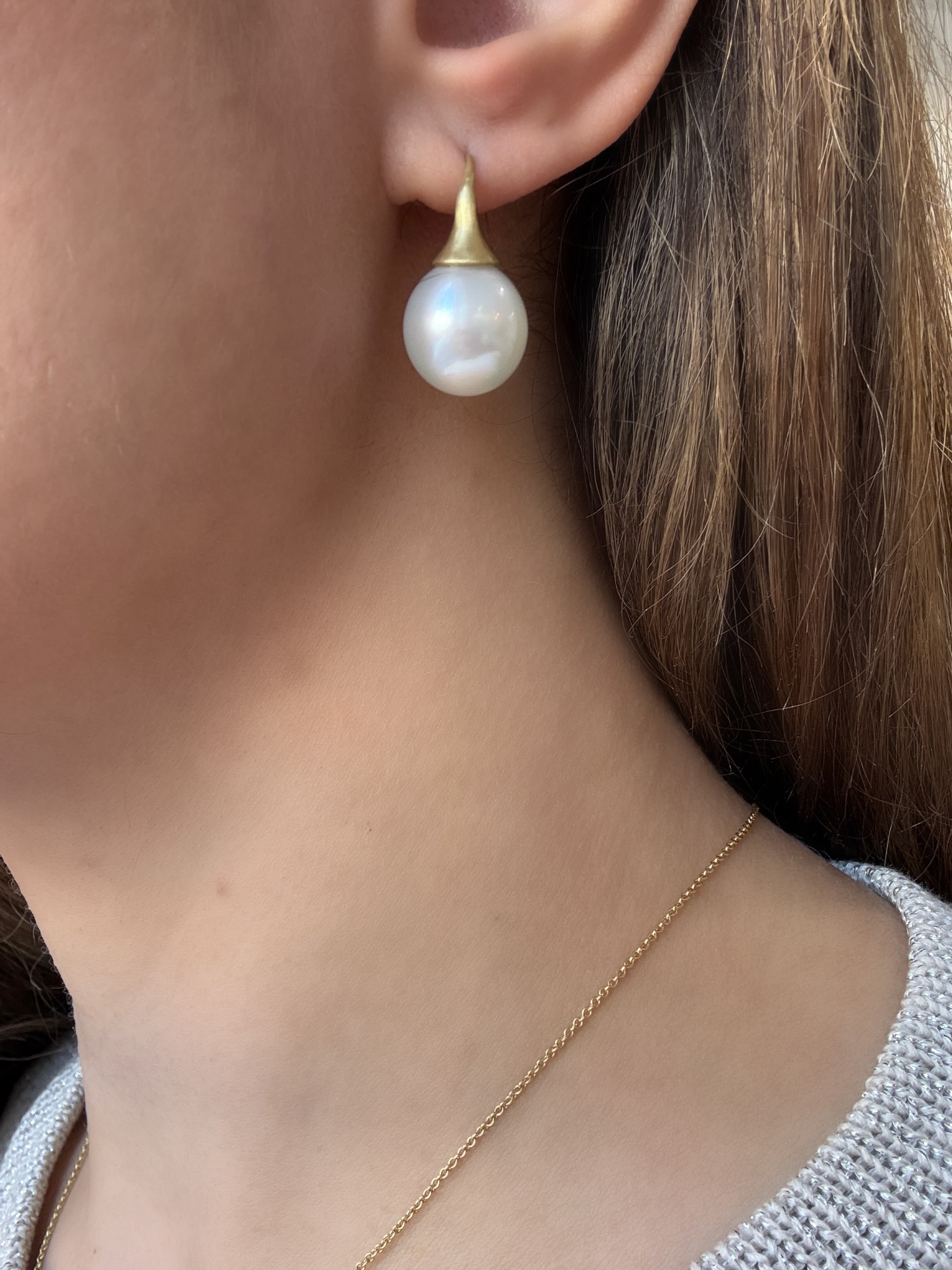 18k Gold South Sea Pearl Earrings with Trumpet Cap