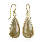 18k gold Yellow Green Sapphire Slice bezel drop earrings with Diamond accent