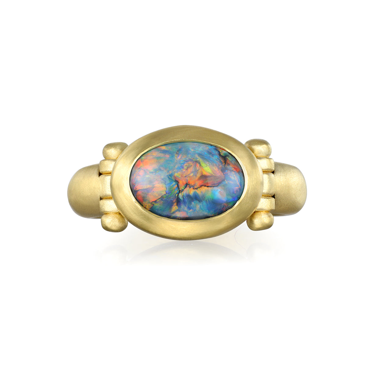 18 Karat Gold Lightning Ridge Australian Black Opal Hinged Ring