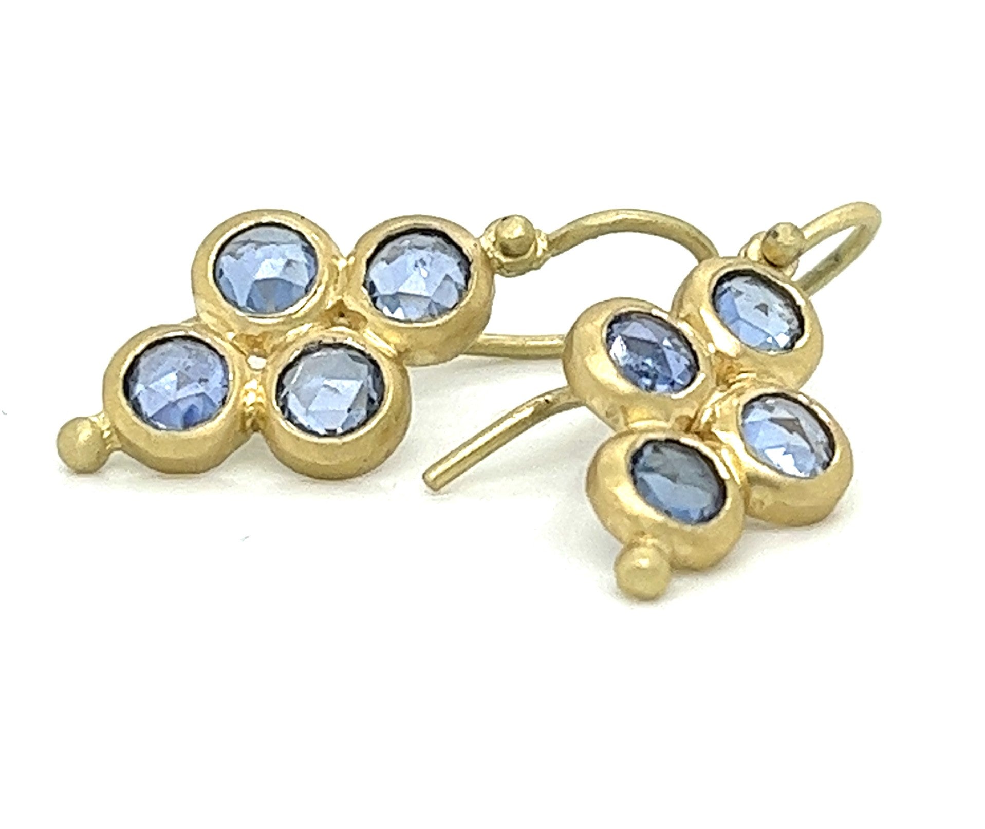 18k Blue Sapphire Rose Cut Quad Drop Earrings