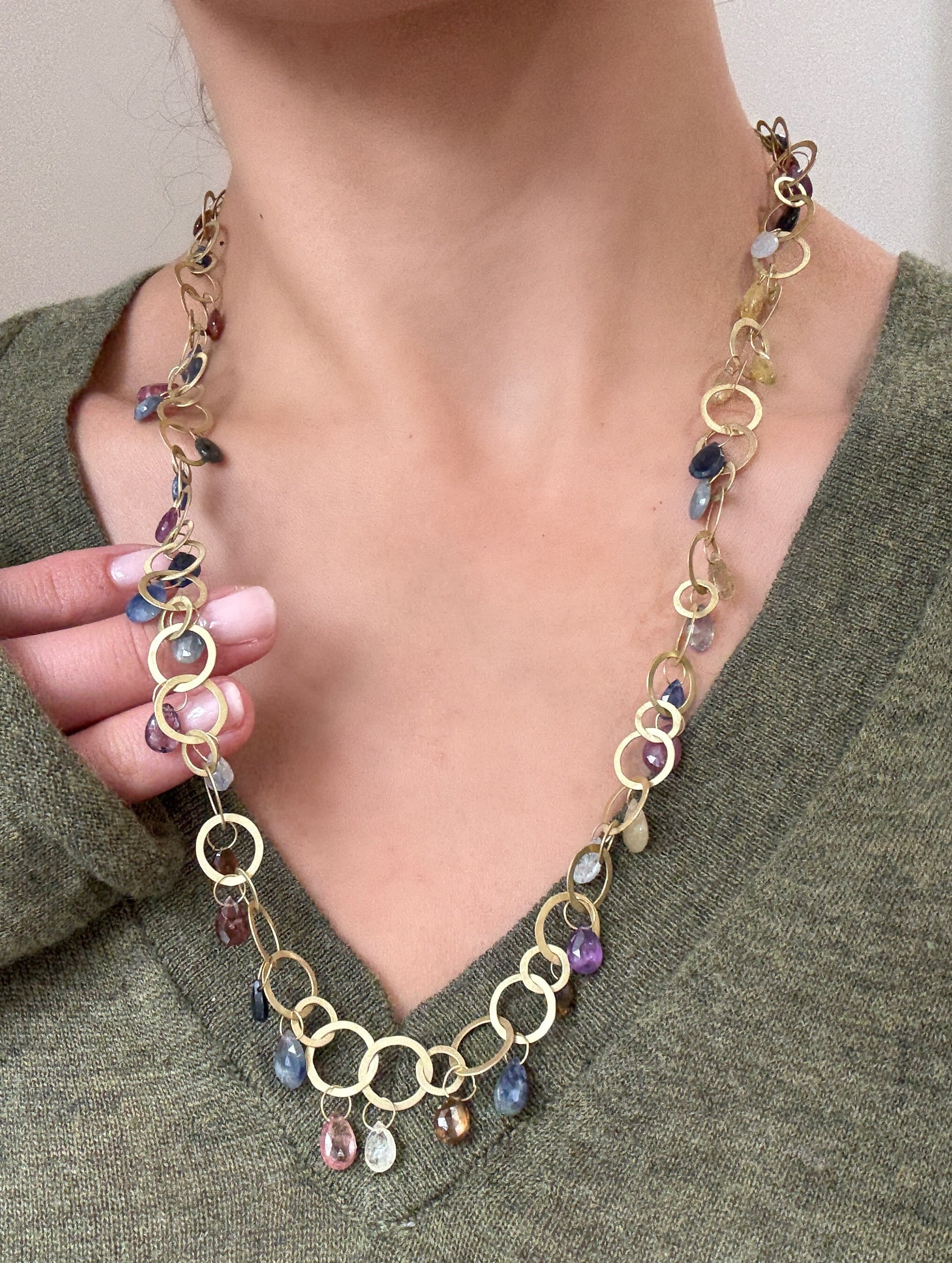 18k Karat Gold Umba Sapphire Briolette Fringe Necklace