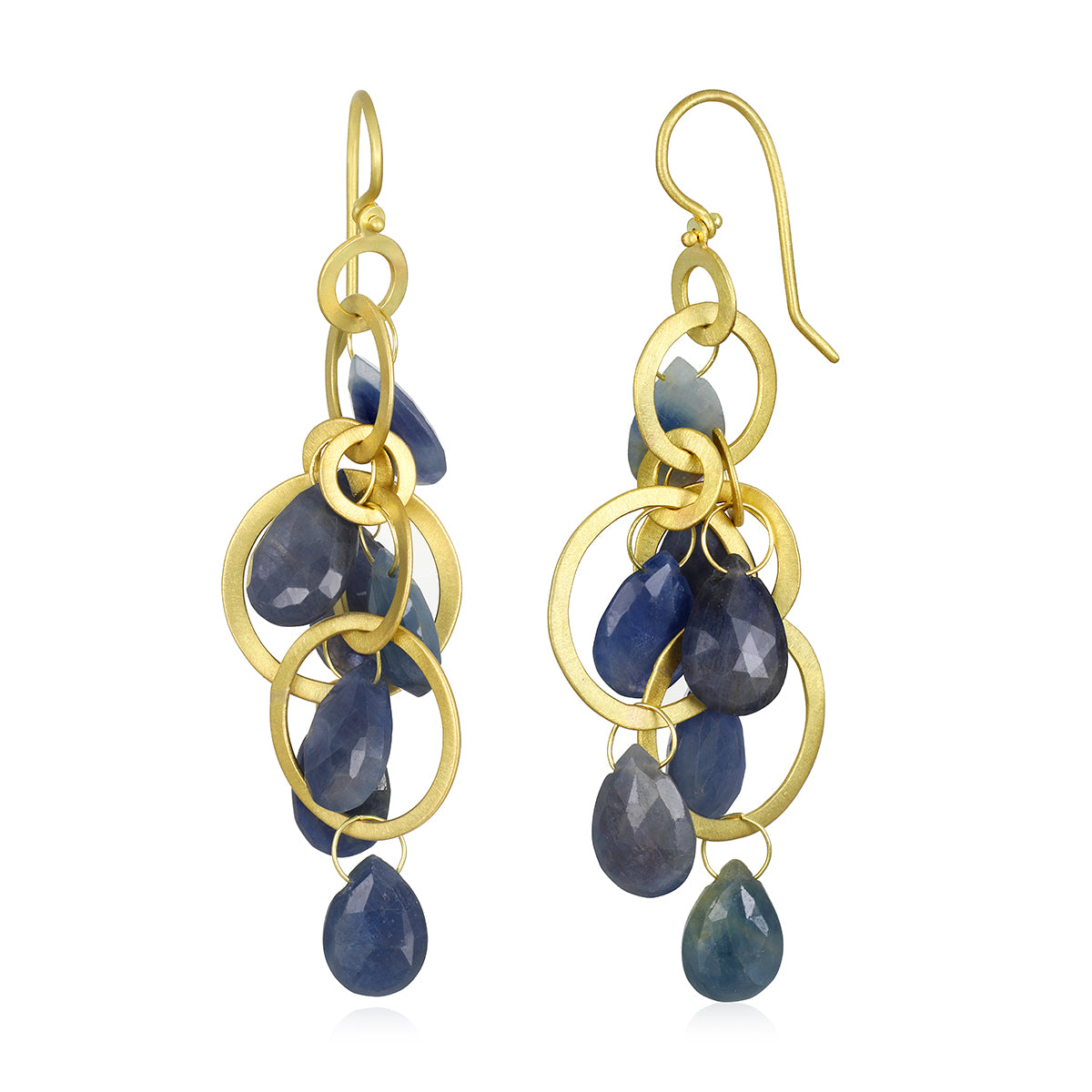 18k Gold Multi-Loop Light Umba Sapphire Briolette Earrings