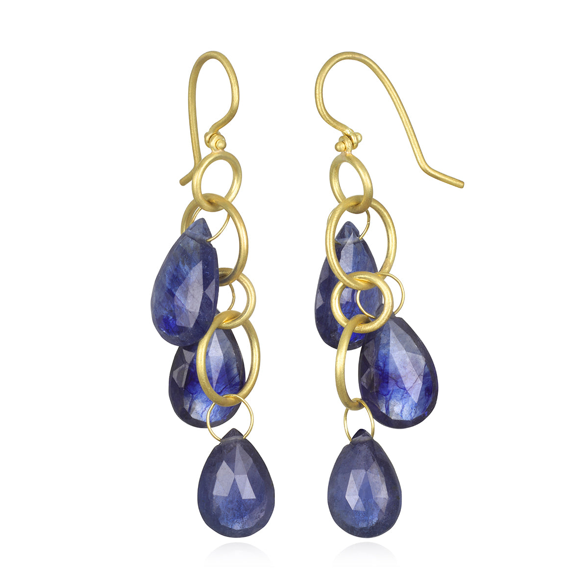 18 Karat Gold Multi-Loop Blue Umba Sapphire Briolette Earrings