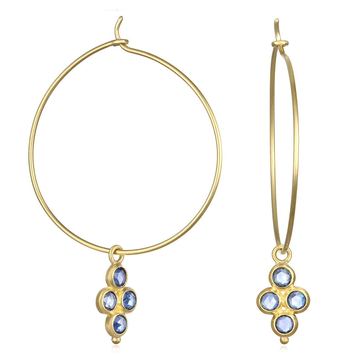 18k Gold Rose Cut Blue Sapphire Quad Drops