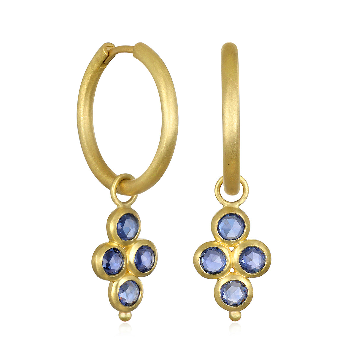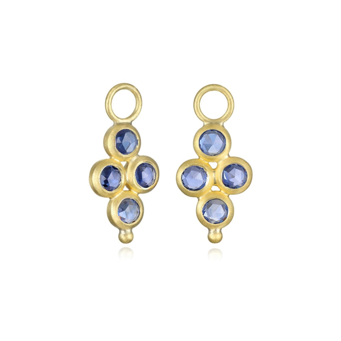 18 Karat Gold Rose Cut Blue Sapphire Quad Drops