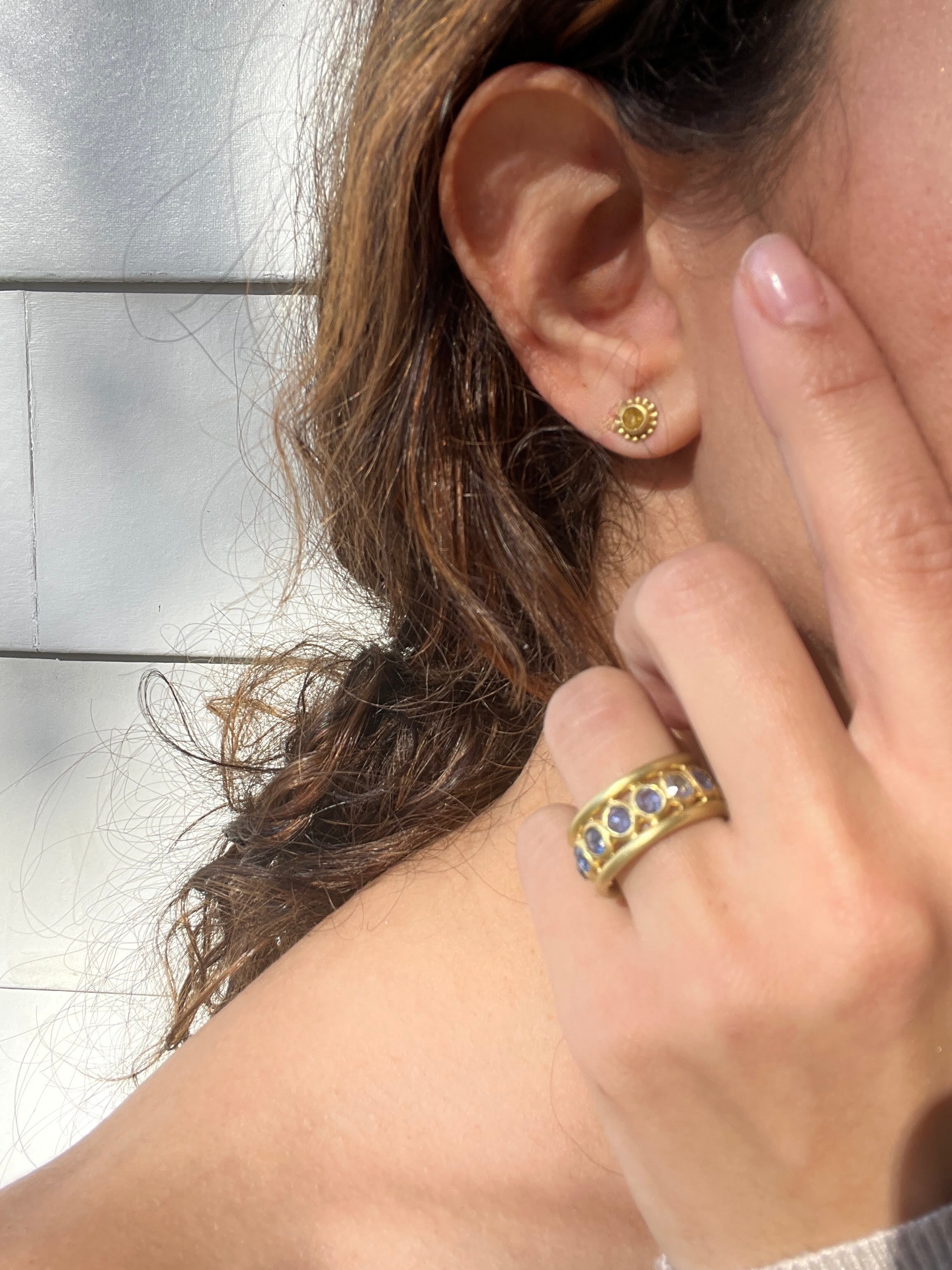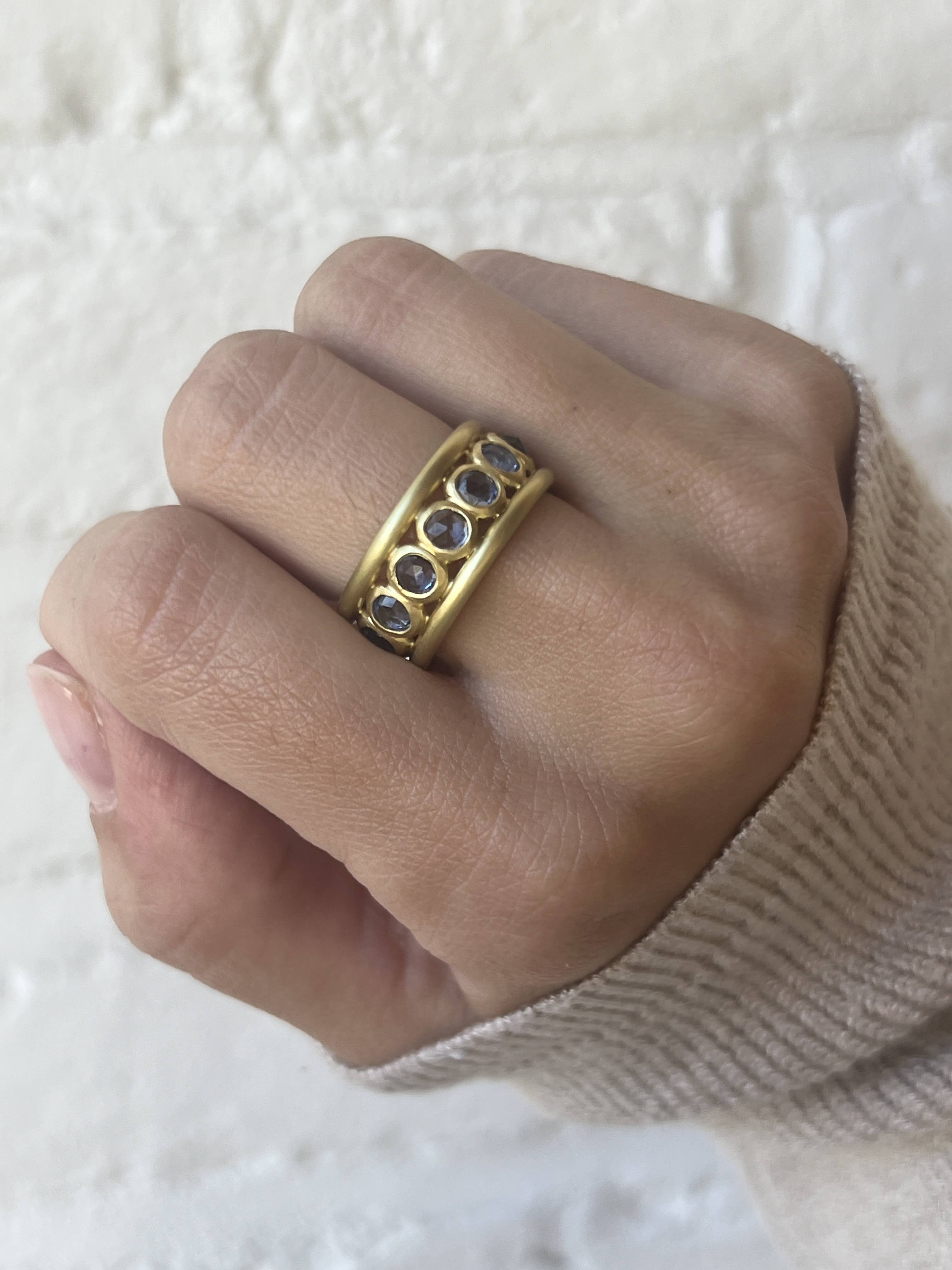 18 Karat Gold Rose Cut Blue Sapphire Eternity Band